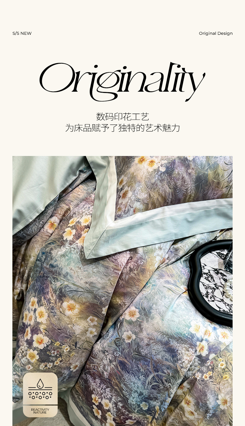 商品名称:(总)禾时 2025新款100S长绒棉纯棉数码印花双拼角四件套-自然逸梦-绿