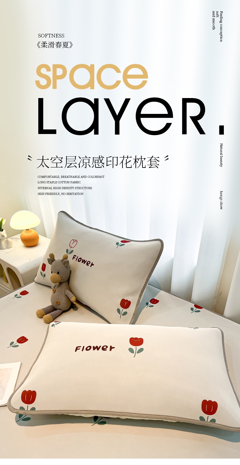 商品名称:LIFE.丽芙 2025春夏新款独家研发太空层凉感冰丝枕头套印花包边款 花语