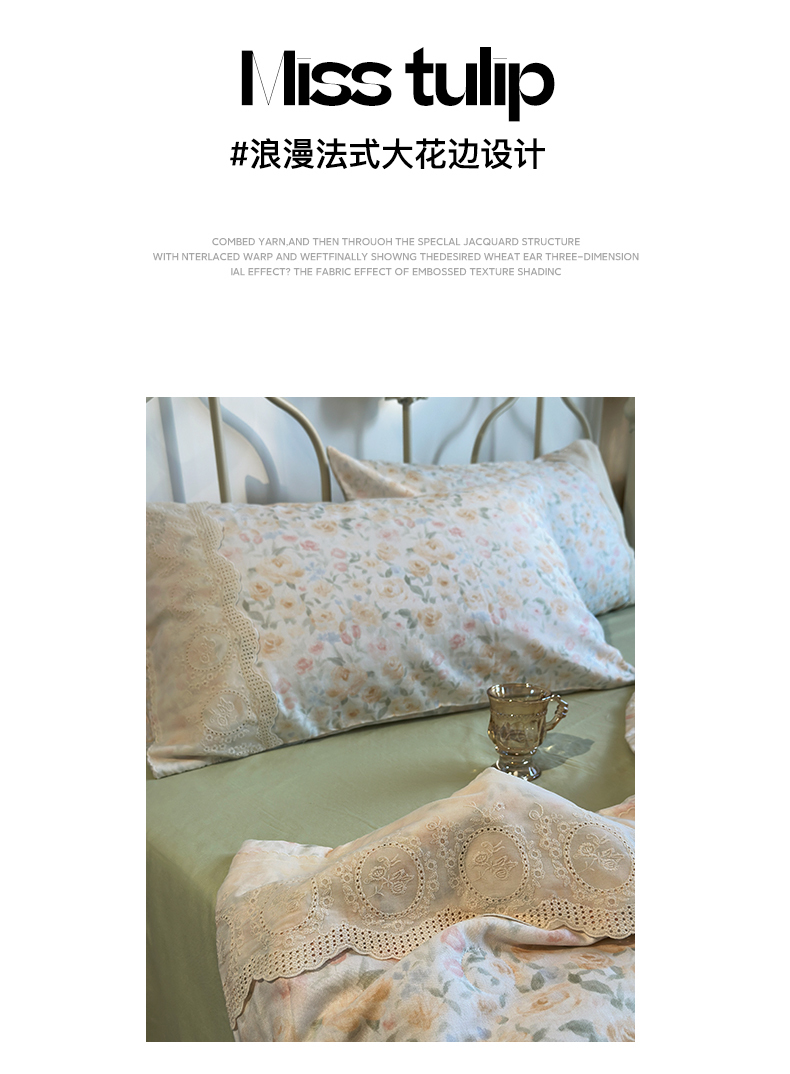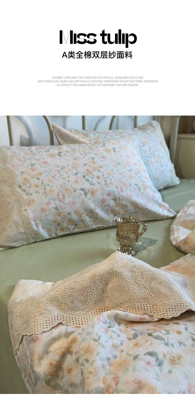 当前位置: 91家纺网 > 商品网购 > 床品套件 > 四件套 > 夏被四件套 > 绫韵家纺 2025夏季新品A类全棉纯棉双层纱法式大花边夏被空调被四件套 月朦胧-黄