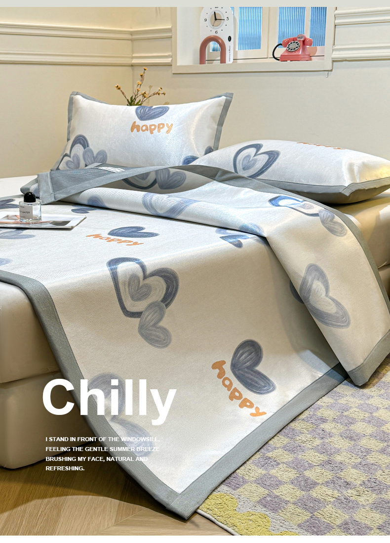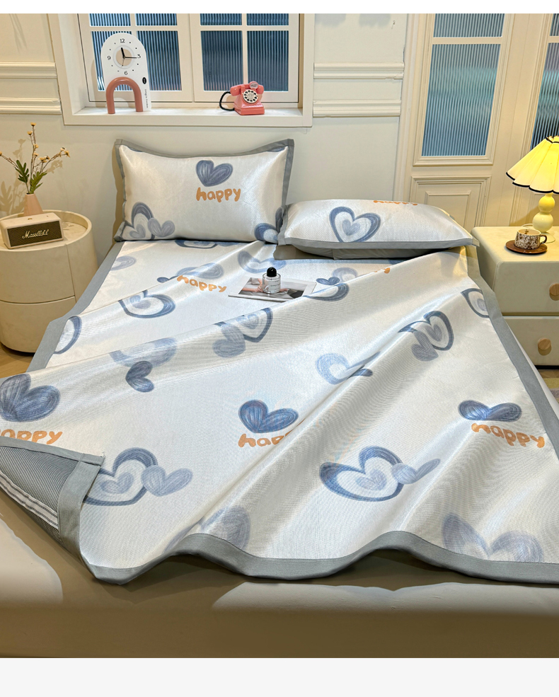 LIFE.丽芙 2025春夏季新品数码印花冰藤凉席平铺冰丝凉席印花小清新绑带款三件套(风格一) 邂逅