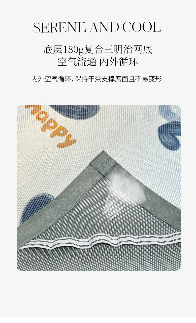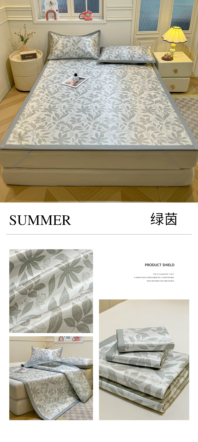 商品名称:LIFE.丽芙 2025春夏季新品数码印花冰藤凉席平铺冰丝凉席印花小清新绑带款三件套(风格一) 邂逅