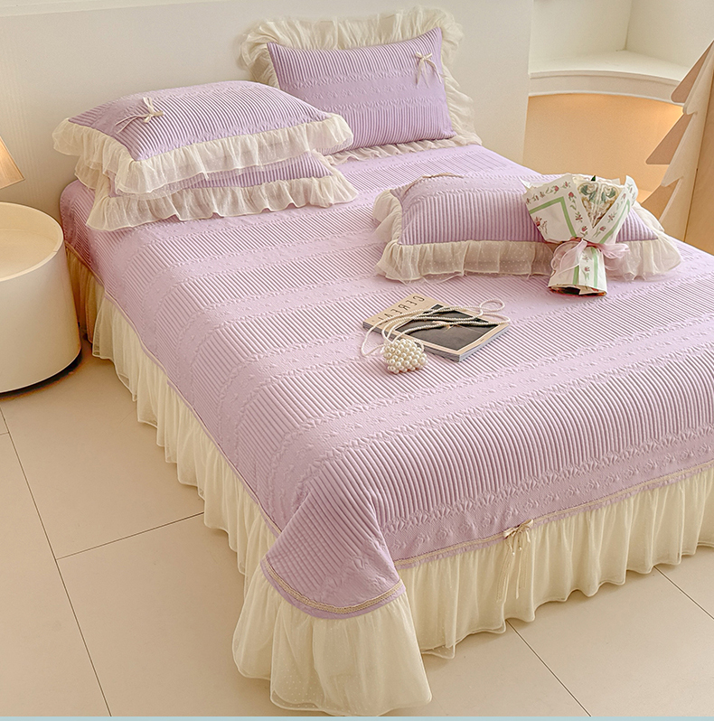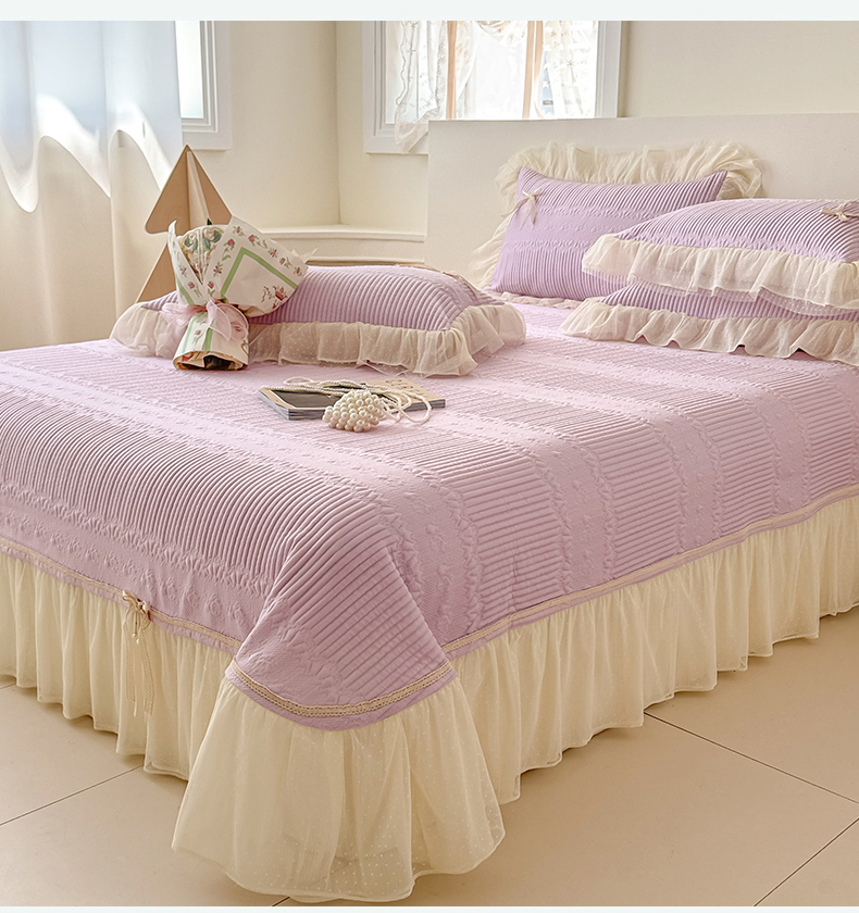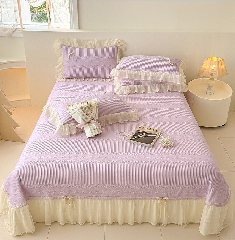商品名称:蓝邻家纺 2025春夏新款PE提花海岛皱花边织带款凉席系列-场景二 羽希-浅紫