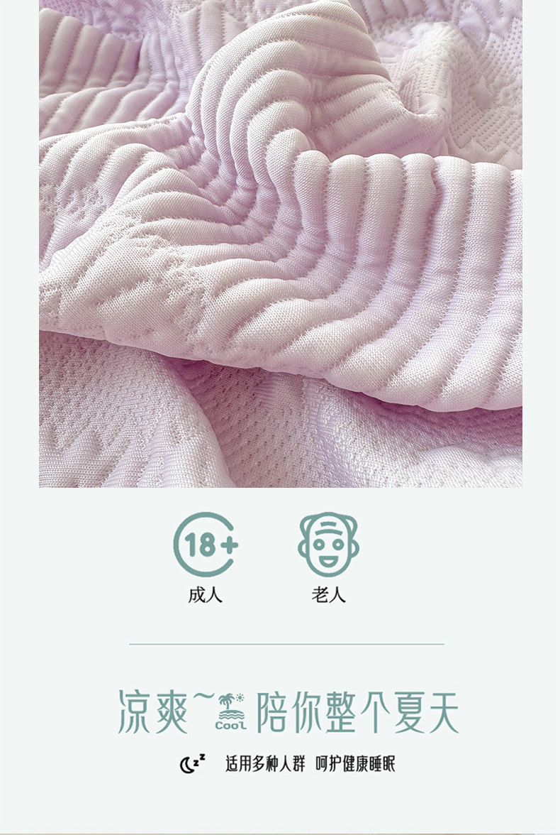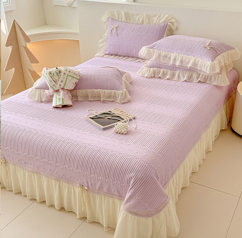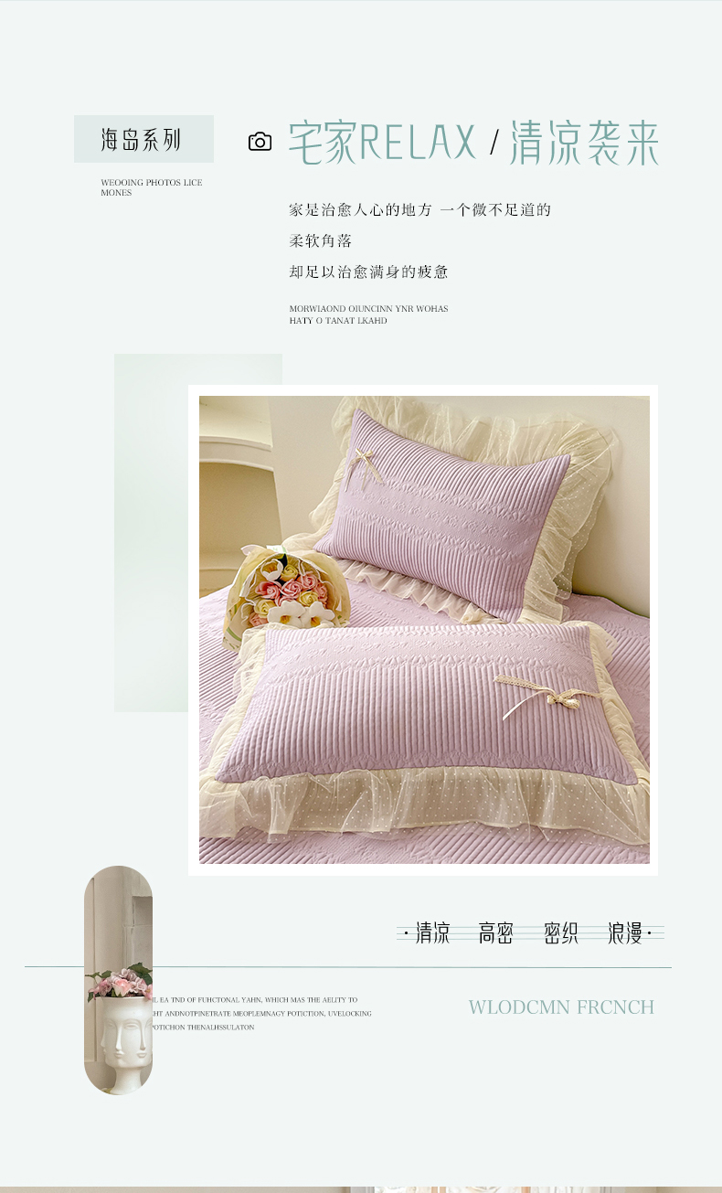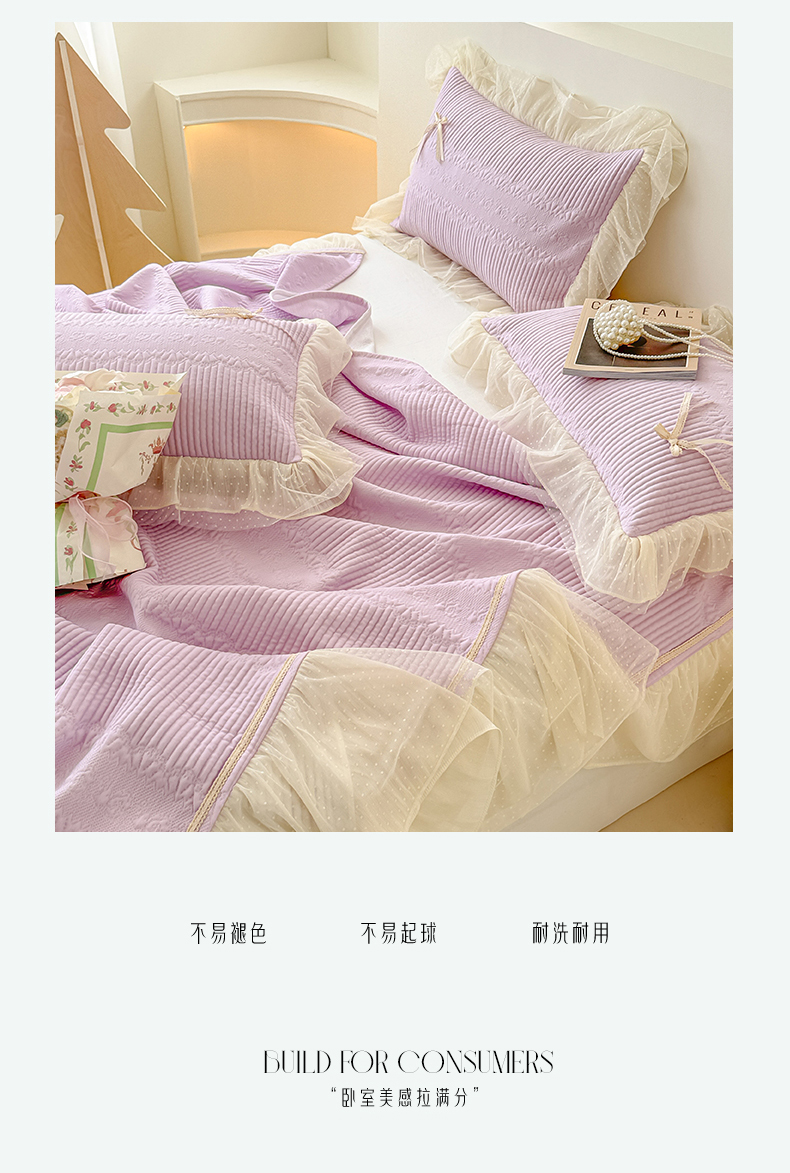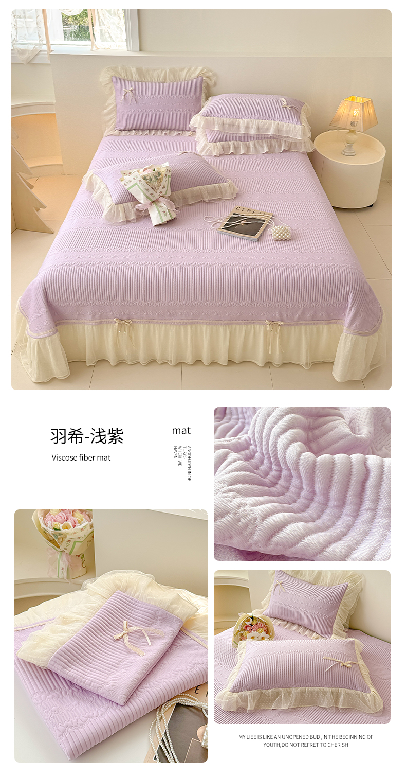 蓝邻家纺 2025春夏新款PE提花海岛皱花边织带款凉席系列-场景二 羽希-浅紫
