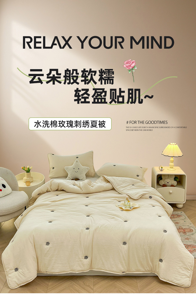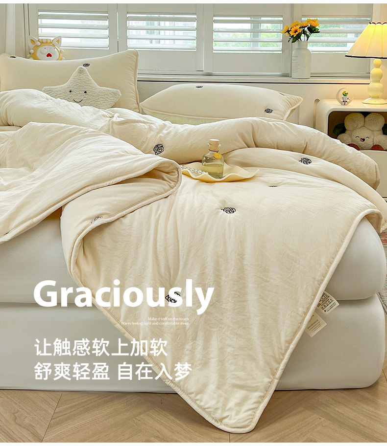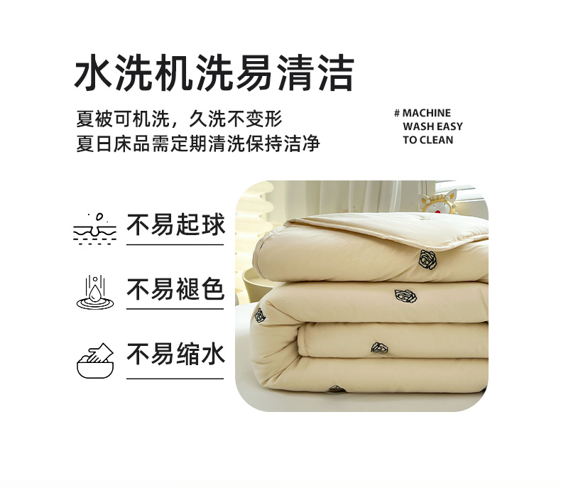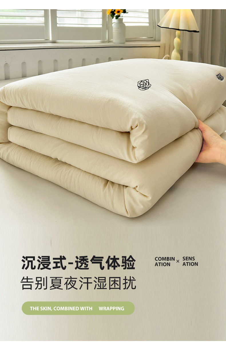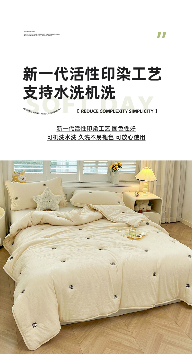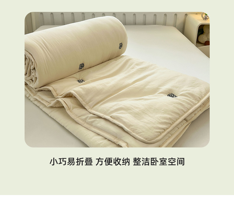 推推家纺 2025新款水洗棉玫瑰刺绣夏被 玫瑰-米白