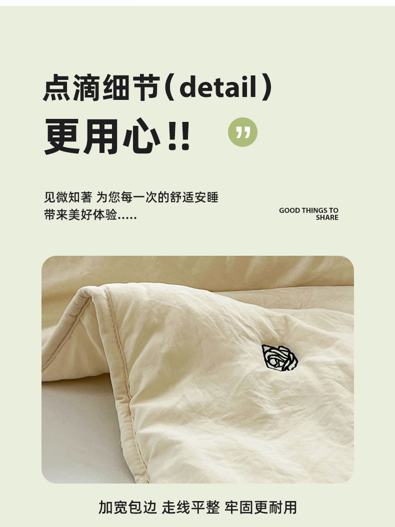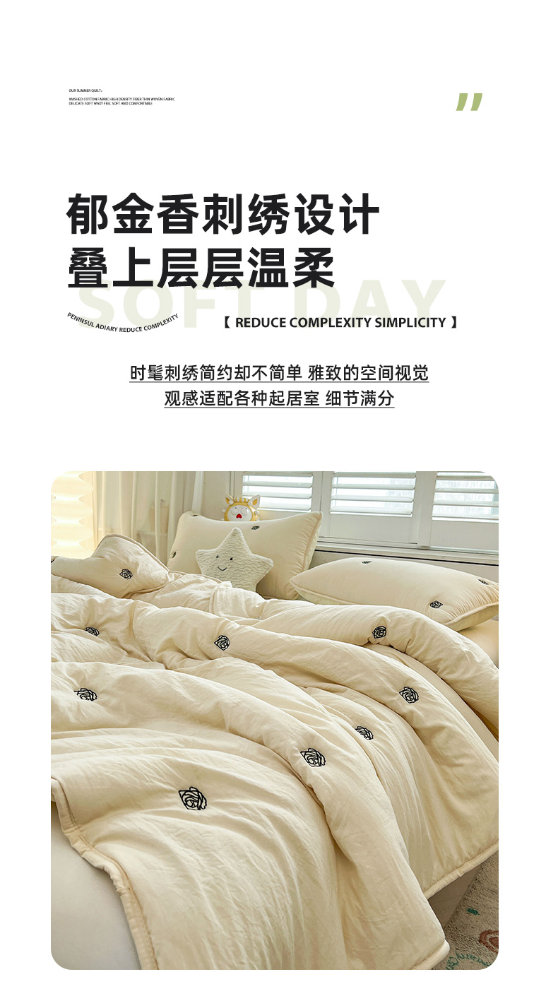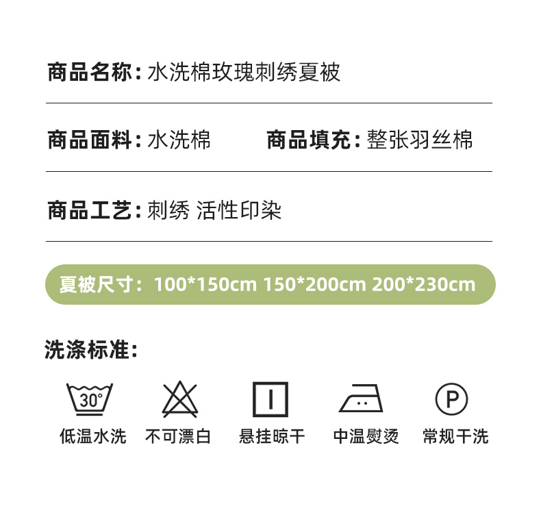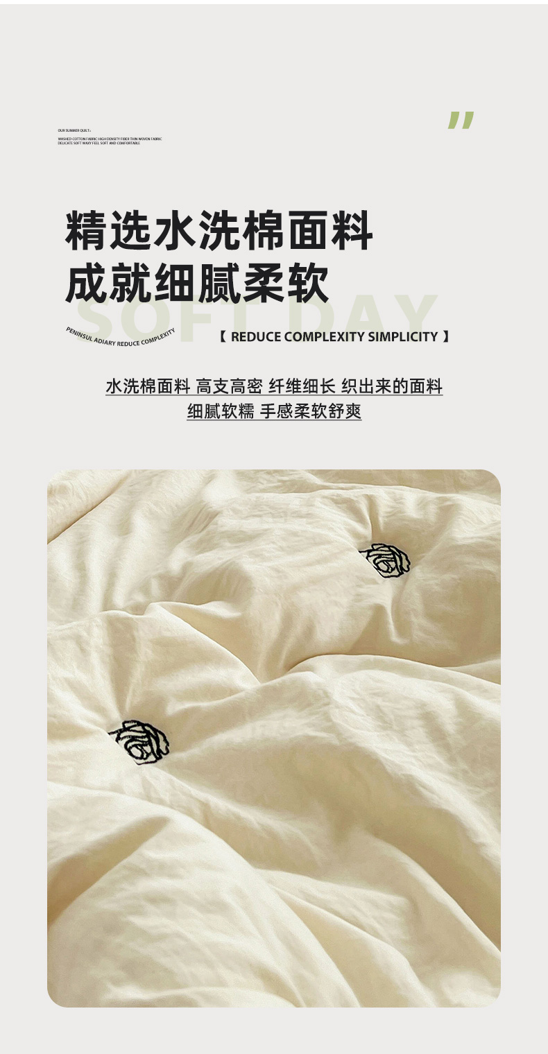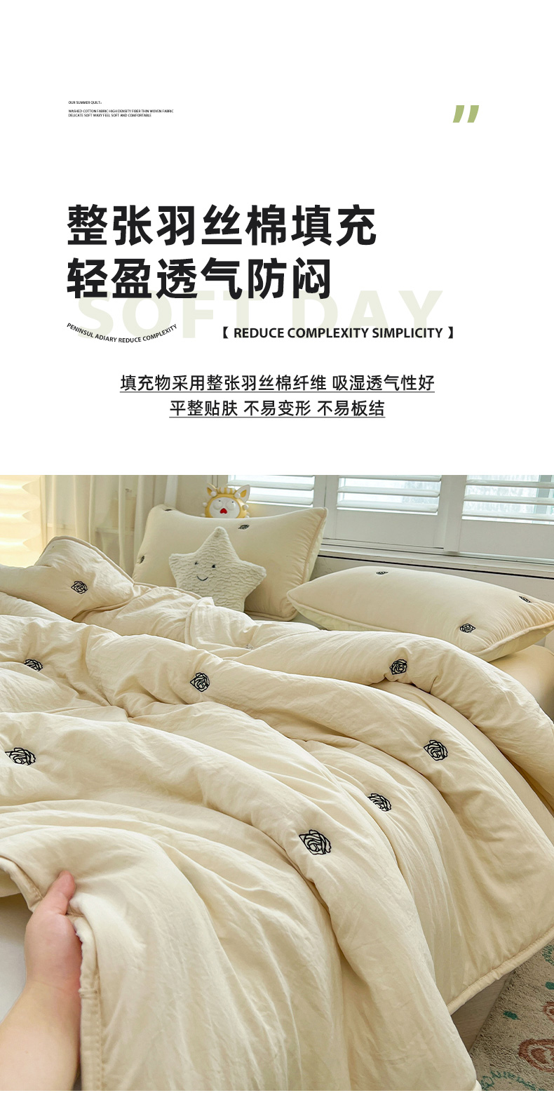 商品名称:推推家纺 2025新款水洗棉玫瑰刺绣夏被 玫瑰-米白