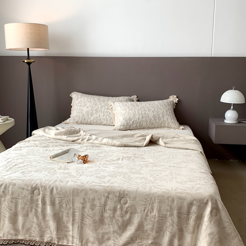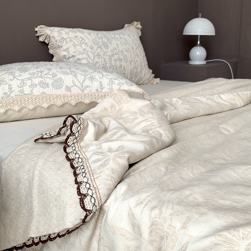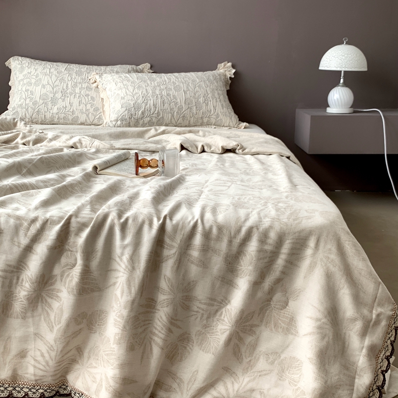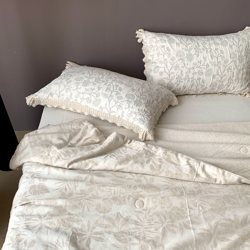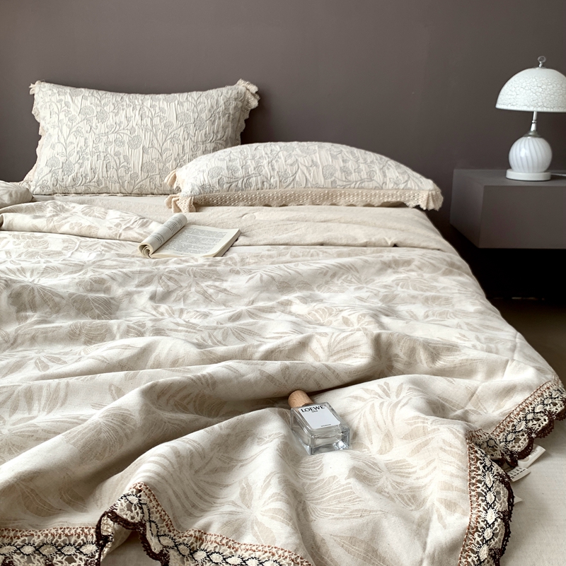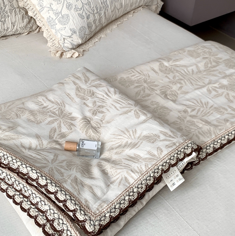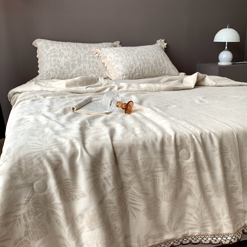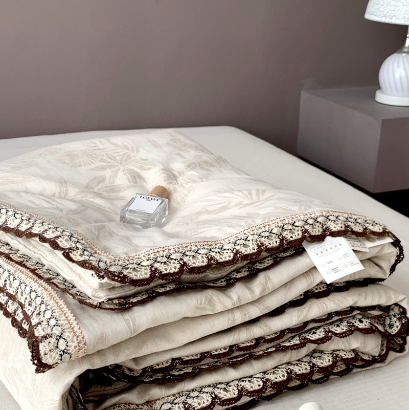 凡客2025新款棉麻色织提花双层纱蚕丝棉夏被(镂空花边款) 铃兰颂