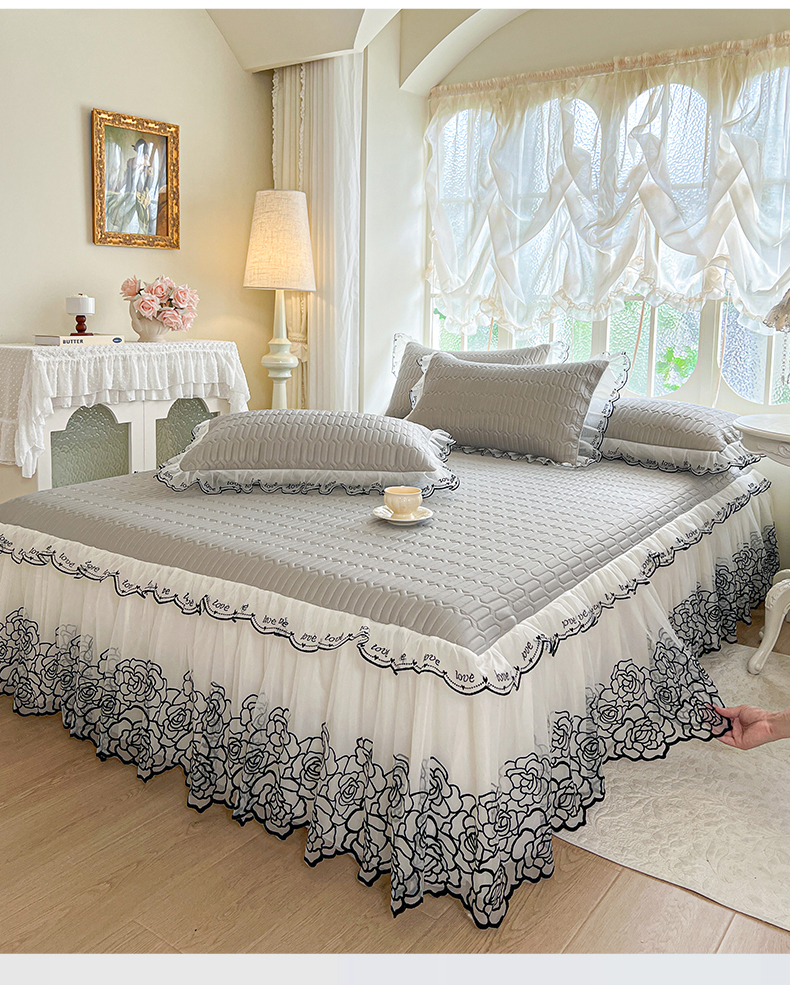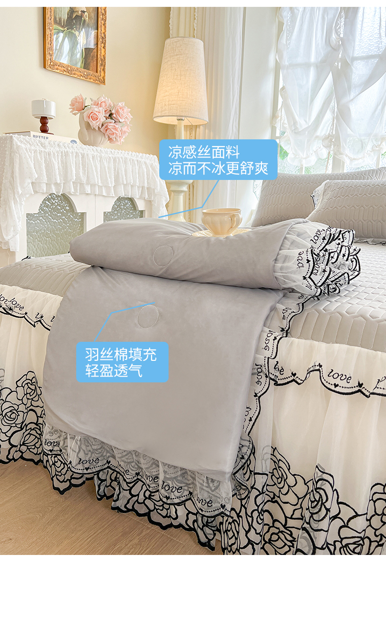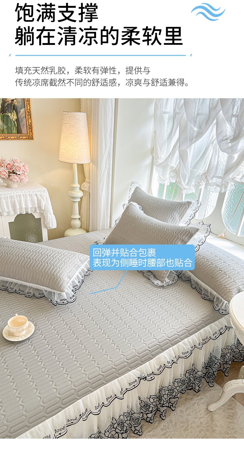 2025新款凉感丝乳胶凉席床裙款夏被四件套-爱恋 灰