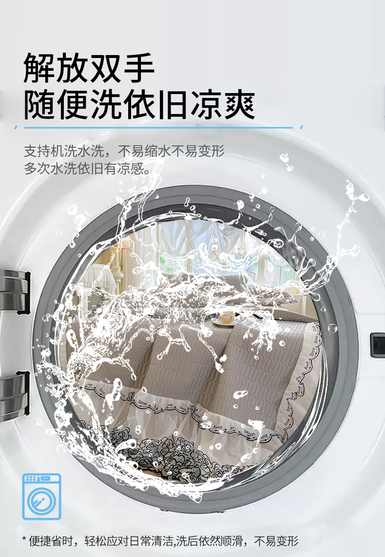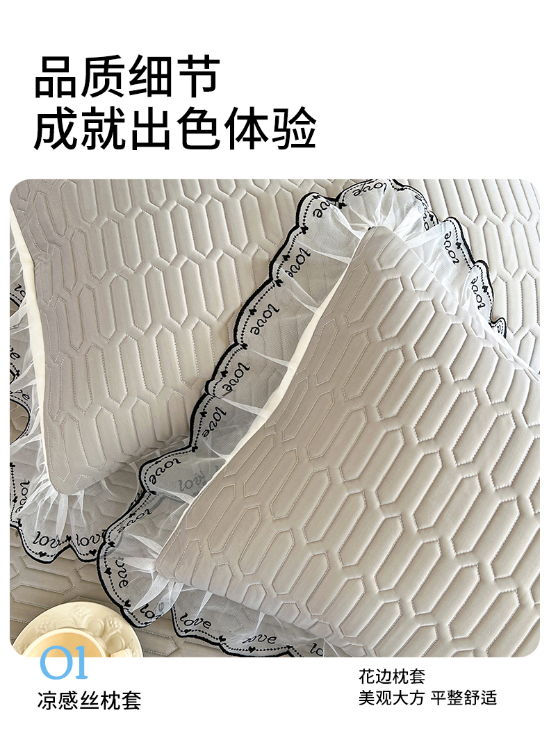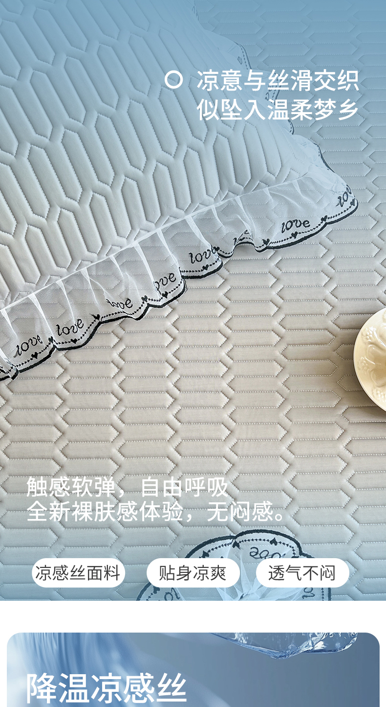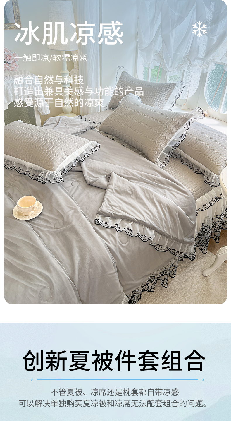 • 91家纺网 家纺一手货源 找家纺 2025新款凉感丝乳胶凉席床裙款夏被四件套-爱恋 灰