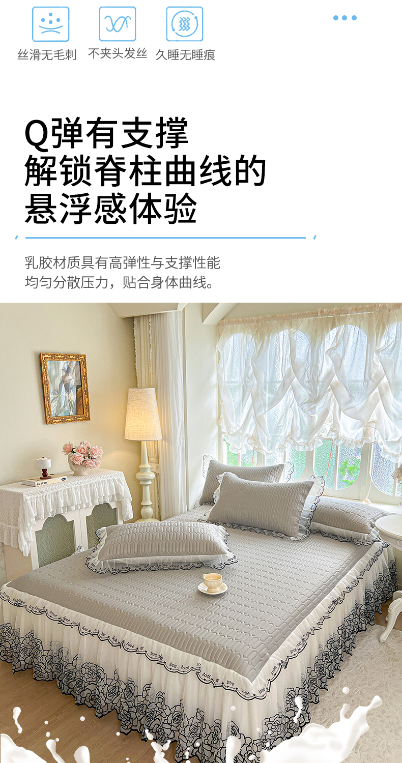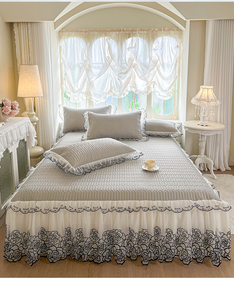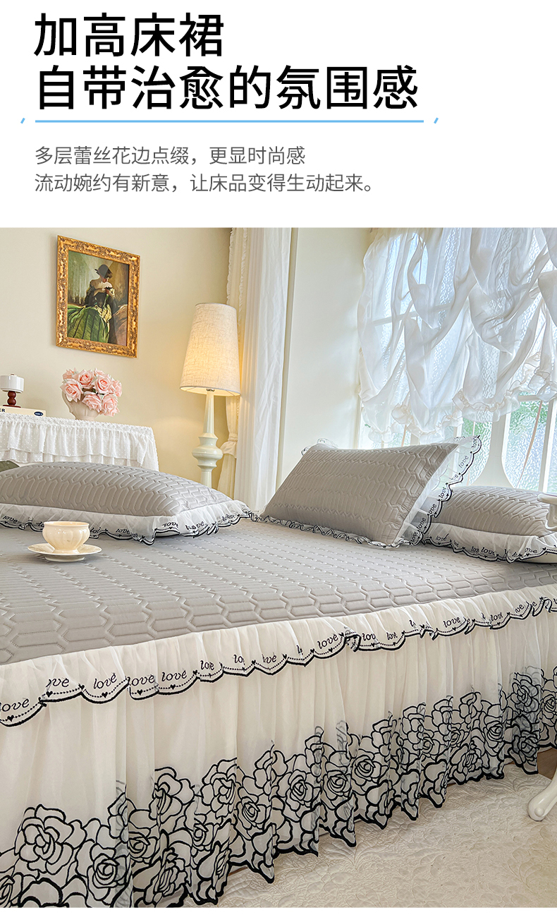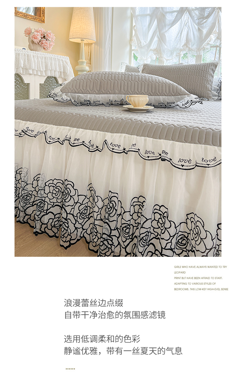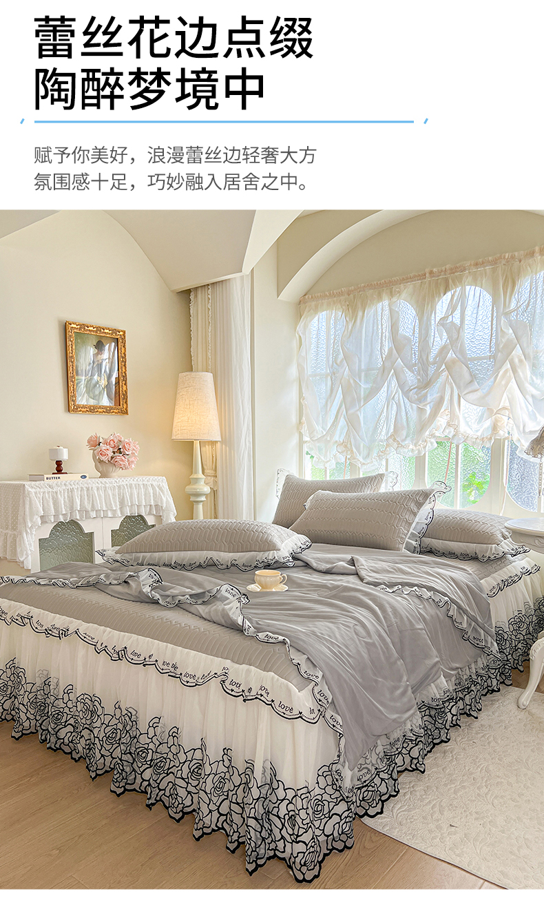 当前位置: 91家纺网 > 商品网购 > 床上用品 > 床裙 > 2025新款凉感丝乳胶凉席床裙款夏被四件套-爱恋 灰