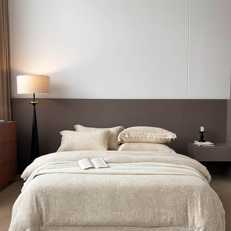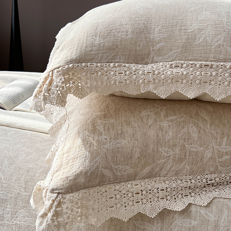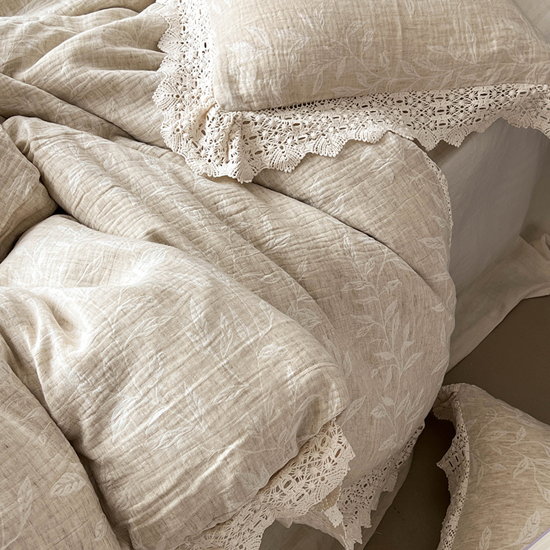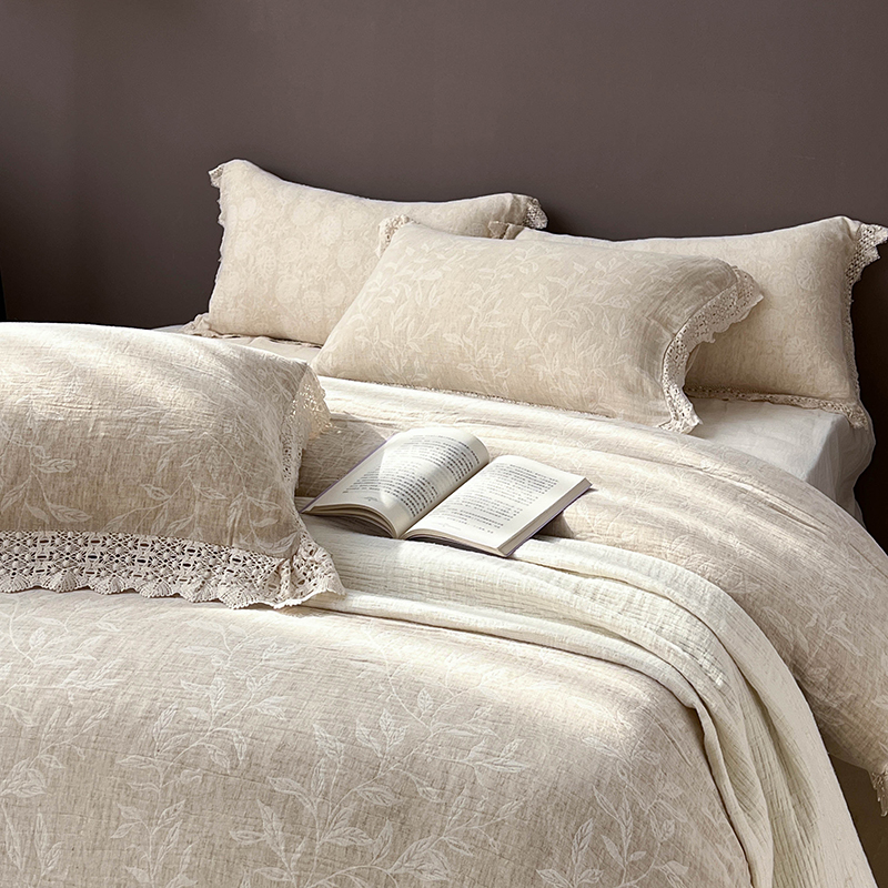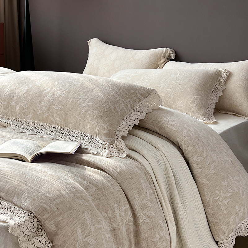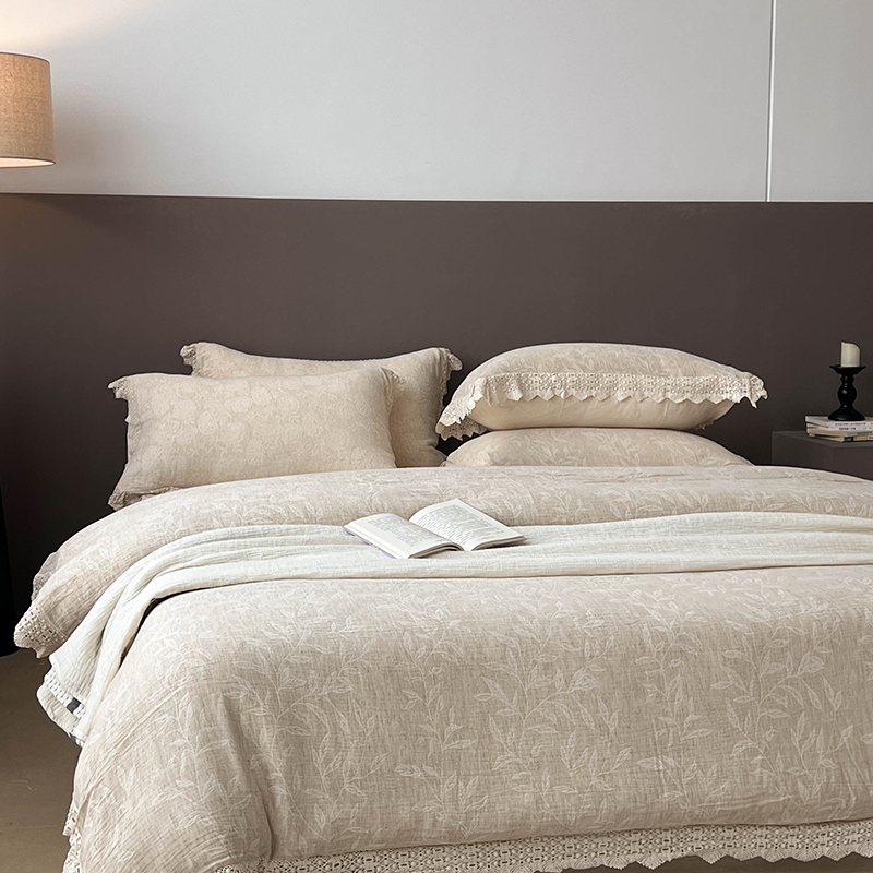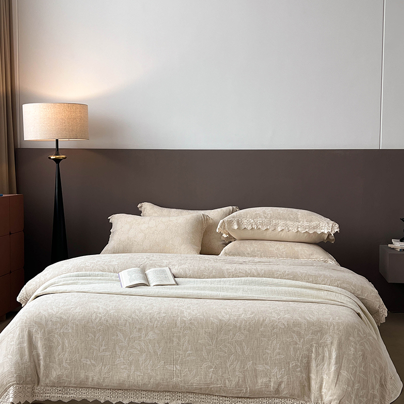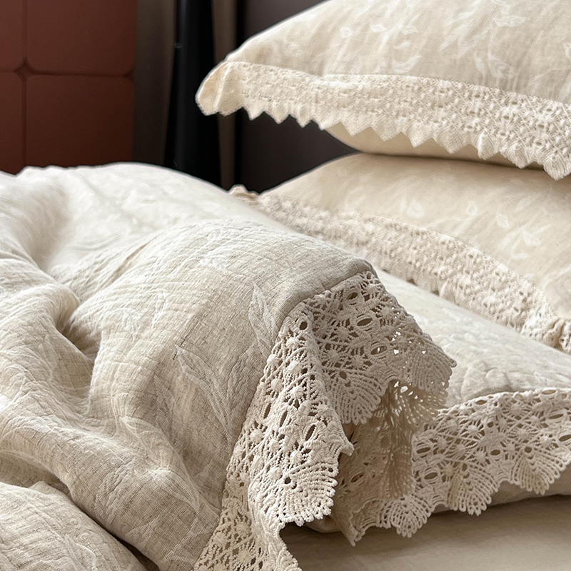 凡客2025新款棉麻色织提花双层纱四件套(镂空花边款) 风吟