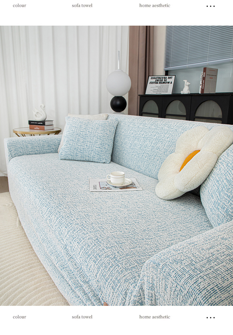 (总)沐沐家纺 2026新款双人位臻品提花沙发套,孔雀蓝,米白,浅灰,浅紫,青色