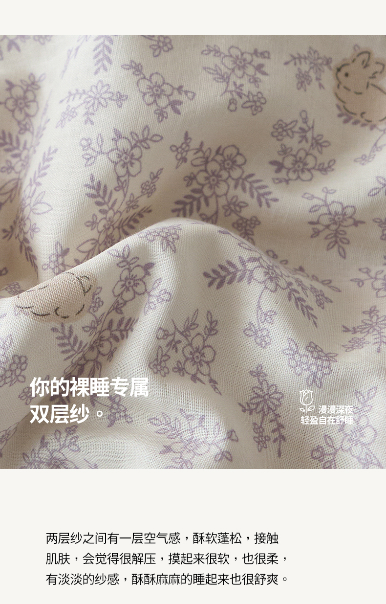 商品名称:安莱生活 2025新款全棉纯棉双层纱复古花边款夏被夏凉被空调被四件套 幽兰