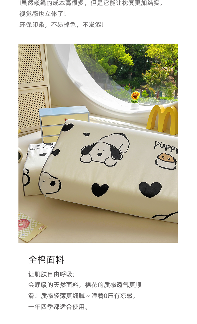 (总)百寐 2023新款全棉13372纯棉碎花小清新卡通枕套,爱心狗,奥汀,初夏,丛林兔,菲菲兔,后花园,花蜜,花悦,画意,兰溪,蘑菇林,秋香,心心熊,紫薇, 笑脸