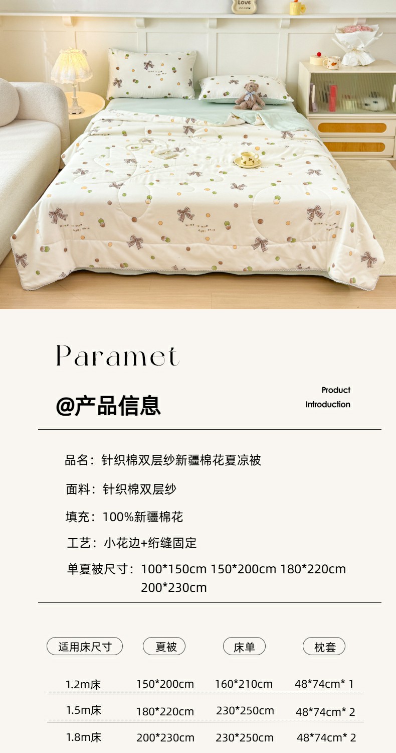 • 适用季节: 空调被/夏凉被