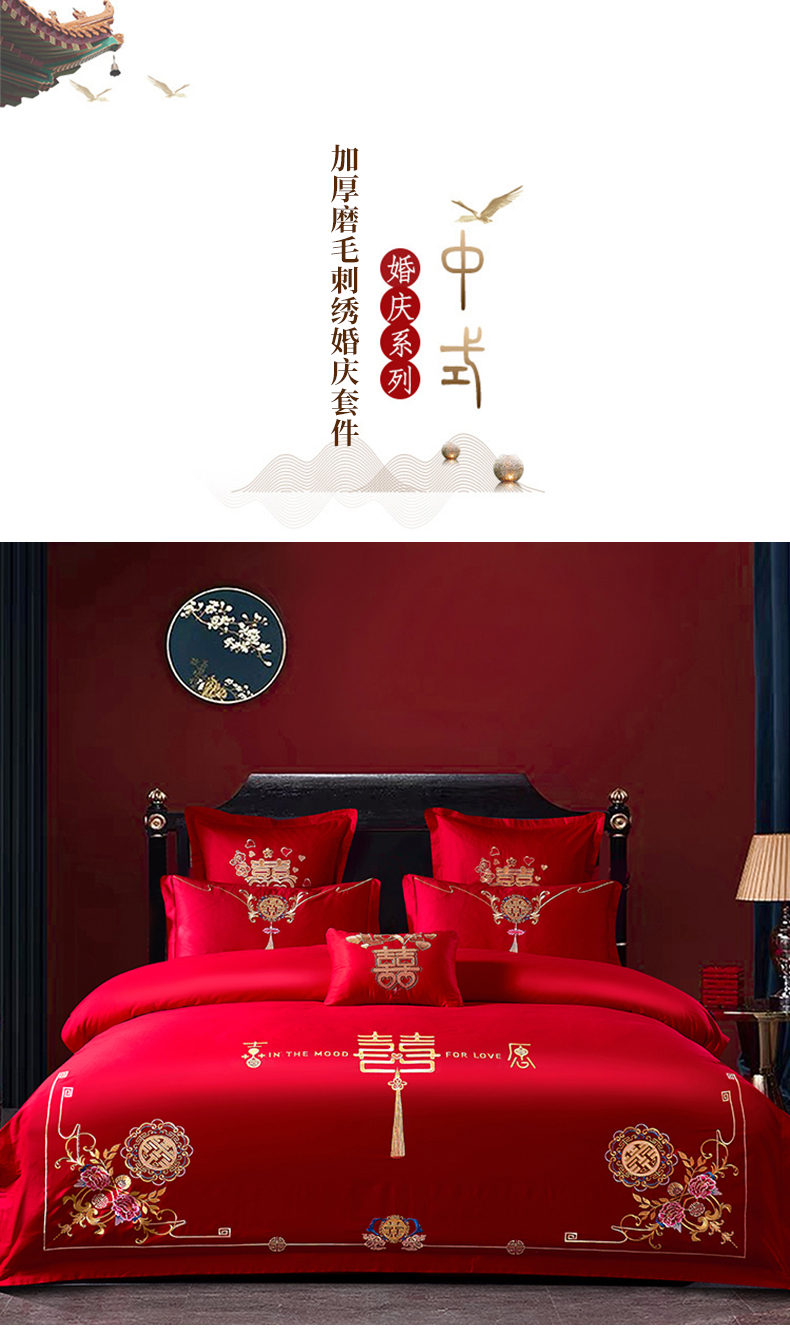当前位置: 91家纺网 > 商品网购 > 床品套件 > 四件套 > 婚庆四件套 > 洽想家 2025新款磨毛婚庆四件套多件套 喜多多