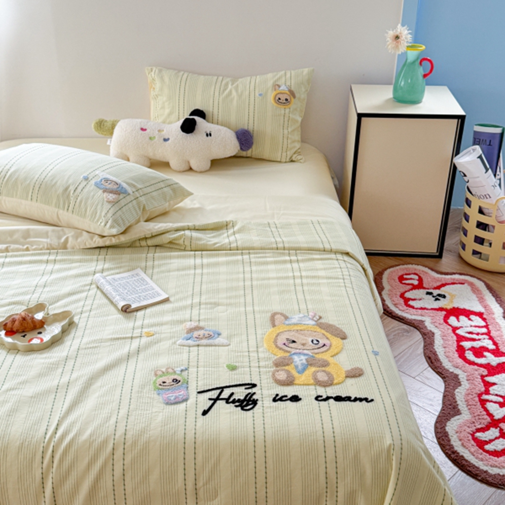 当前位置: 91家纺网 > 商品网购 > 床品套件 > 四件套 > 夏被四件套 > 柚子YOUTH 2025新款水洗棉提花毛巾绣夏被四件套 组合图仅供展示