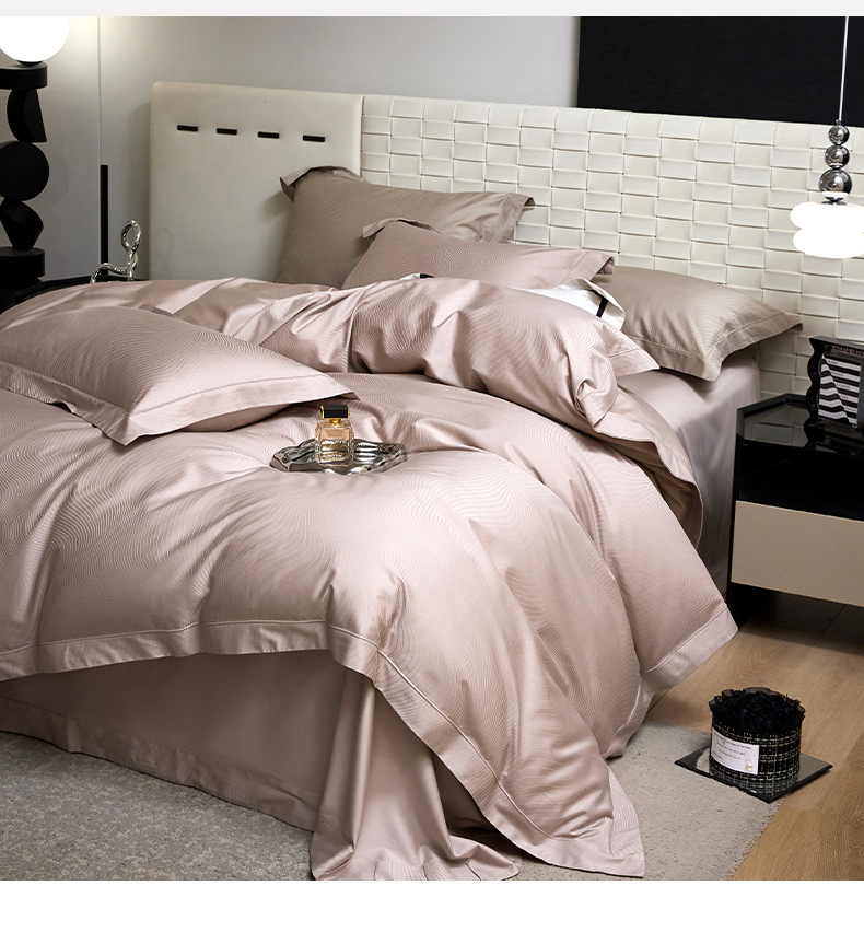 商品名称:洽想家 2025新款长绒棉贡缎提花手工立体埋绳工艺四件套礼盒包装 格律时尚-粉玉