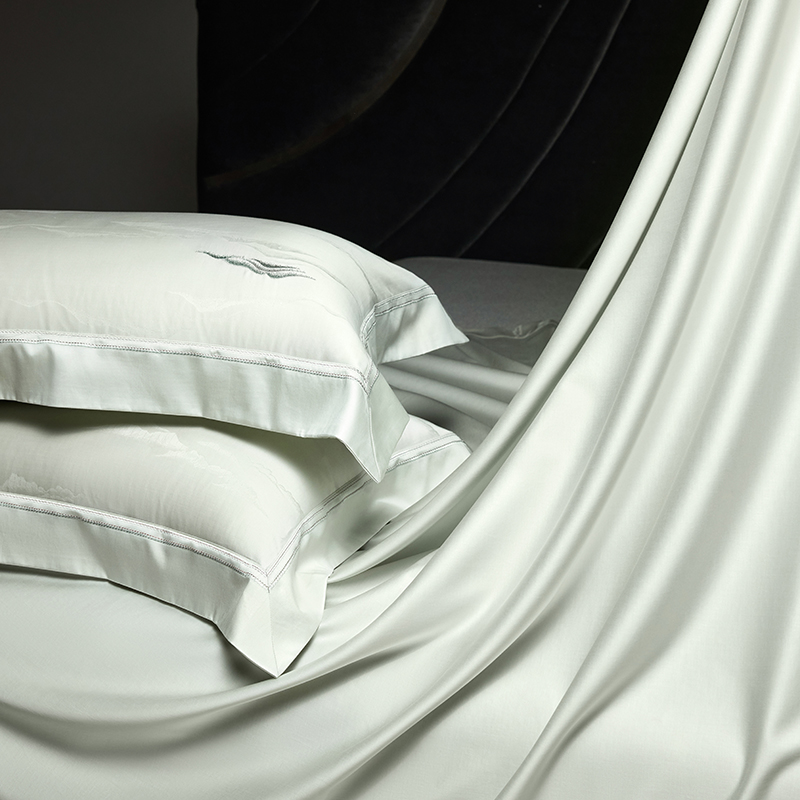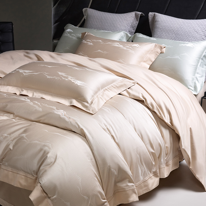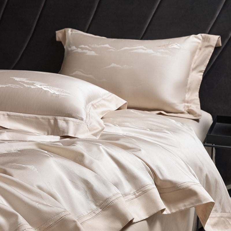 商品名称:洽想家 2025新款100支天丝棉提花加绣花工艺款床品四件套--山岚夏梦系列 山岚夏梦-香槟金