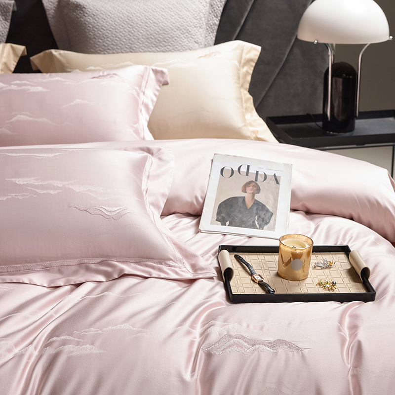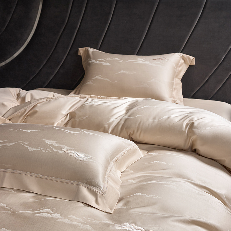 洽想家 2025新款100支天丝棉提花加绣花工艺款床品四件套--山岚夏梦系列 山岚夏梦-香槟金