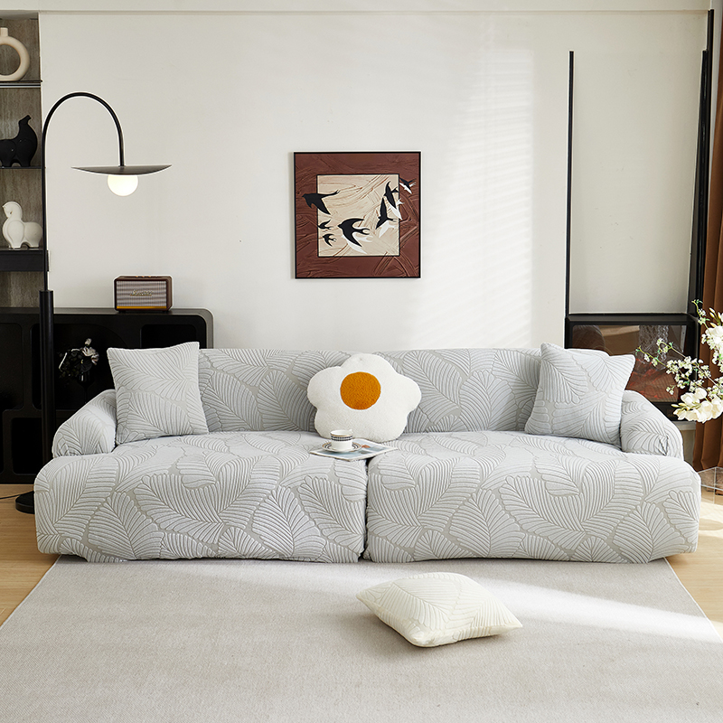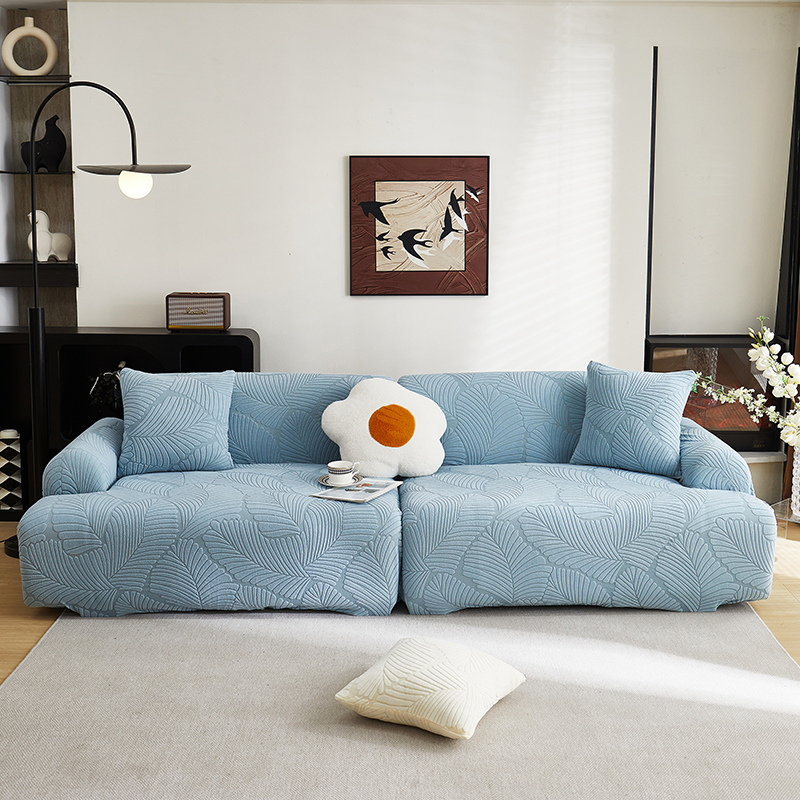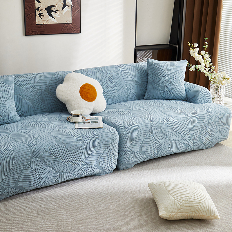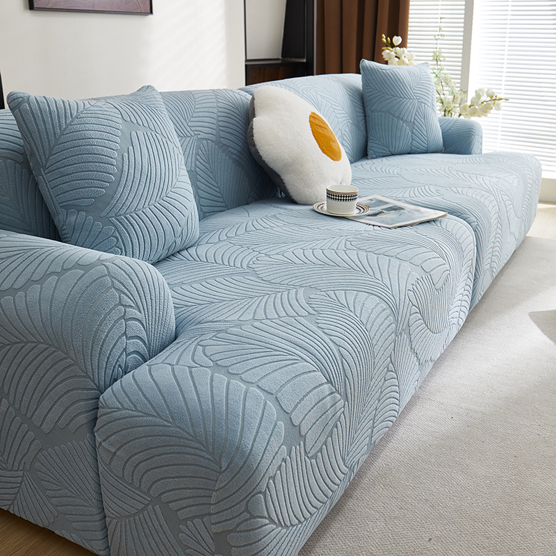 丝绮鹿 2025新款雕花绒大叶子沙发套松紧款(直排) 雾霾蓝
