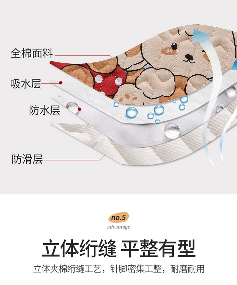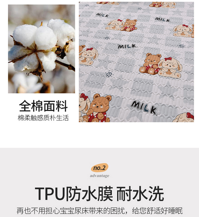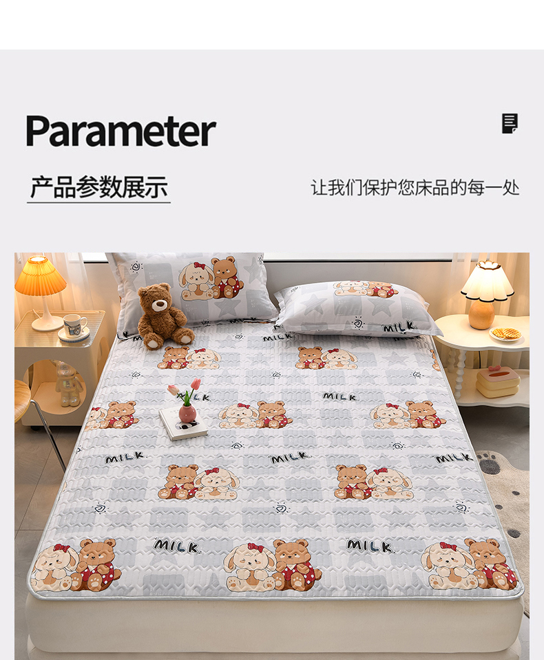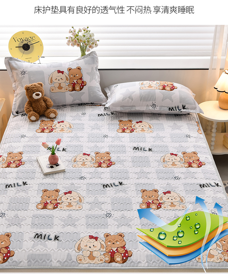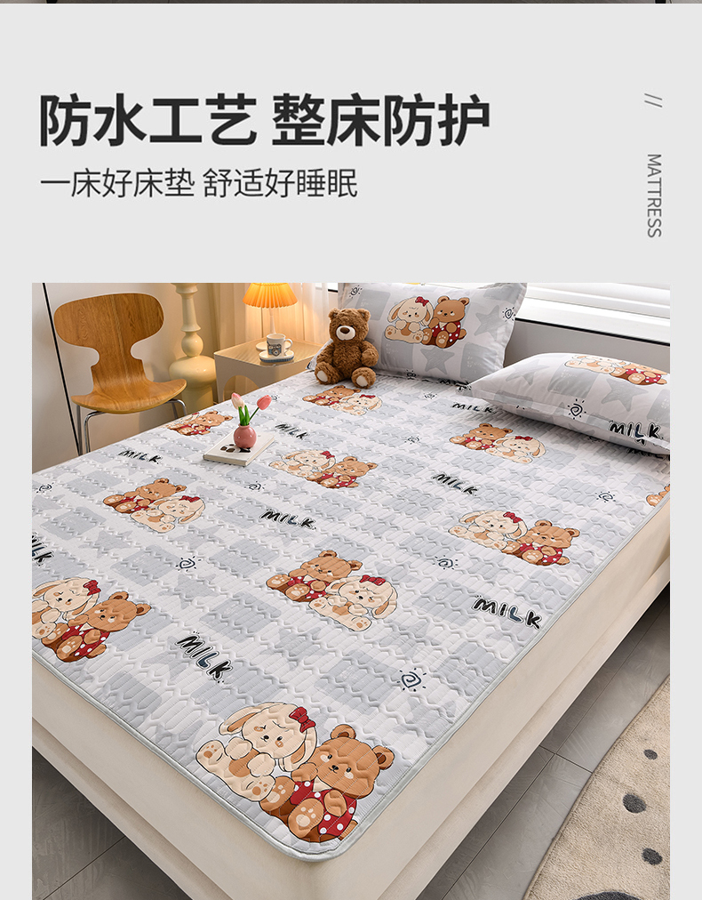 床笠人家 2025新款全棉夹棉防水床垫 酷乐熊,酷乐熊
