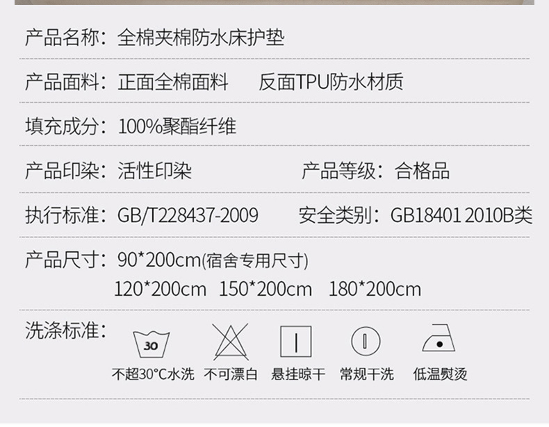商品名称:床笠人家 2025新款全棉夹棉防水床垫 好伙伴