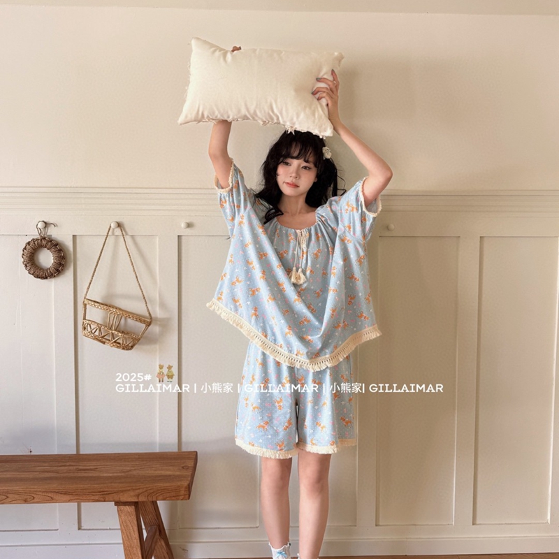 妍景家居生活馆 2025新款小熊家-短裤家居服 小鹿 小鹿-黄色