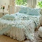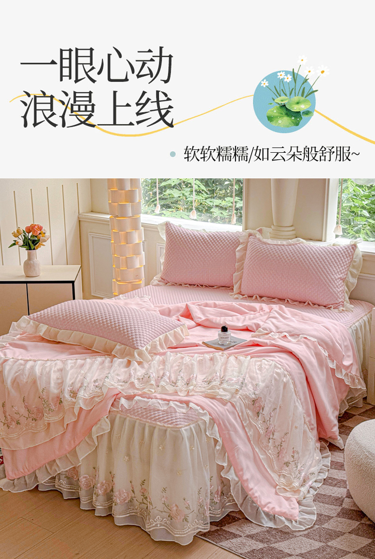 商品名称:漫布云2025新款A类甄选PE凉感丝花边床裙款冰豆豆凉席床盖三件套春夏韩版公主风水洗棉蕾丝夏被 梦幻—梦幻蓝