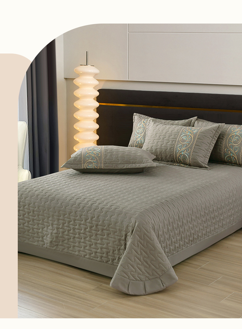 OL家纺 2025春夏新款轻奢风针织云棉床盖夹绵防滑床该款四件套 灰色