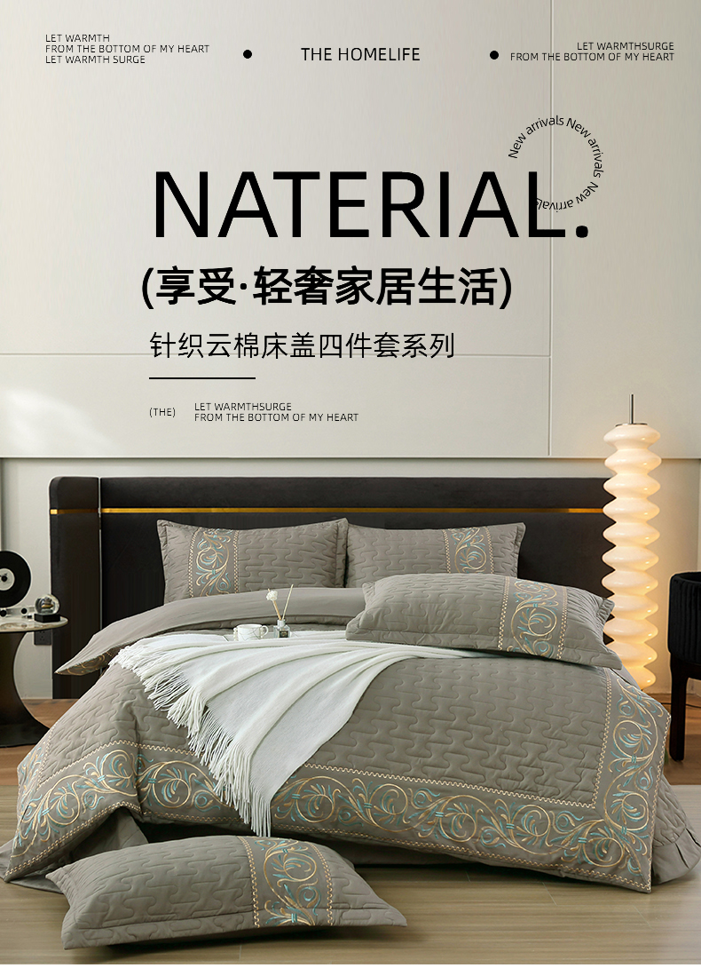 商品名称:OL家纺 2025春夏新款轻奢风针织云棉床盖夹绵防滑床该款四件套 灰色