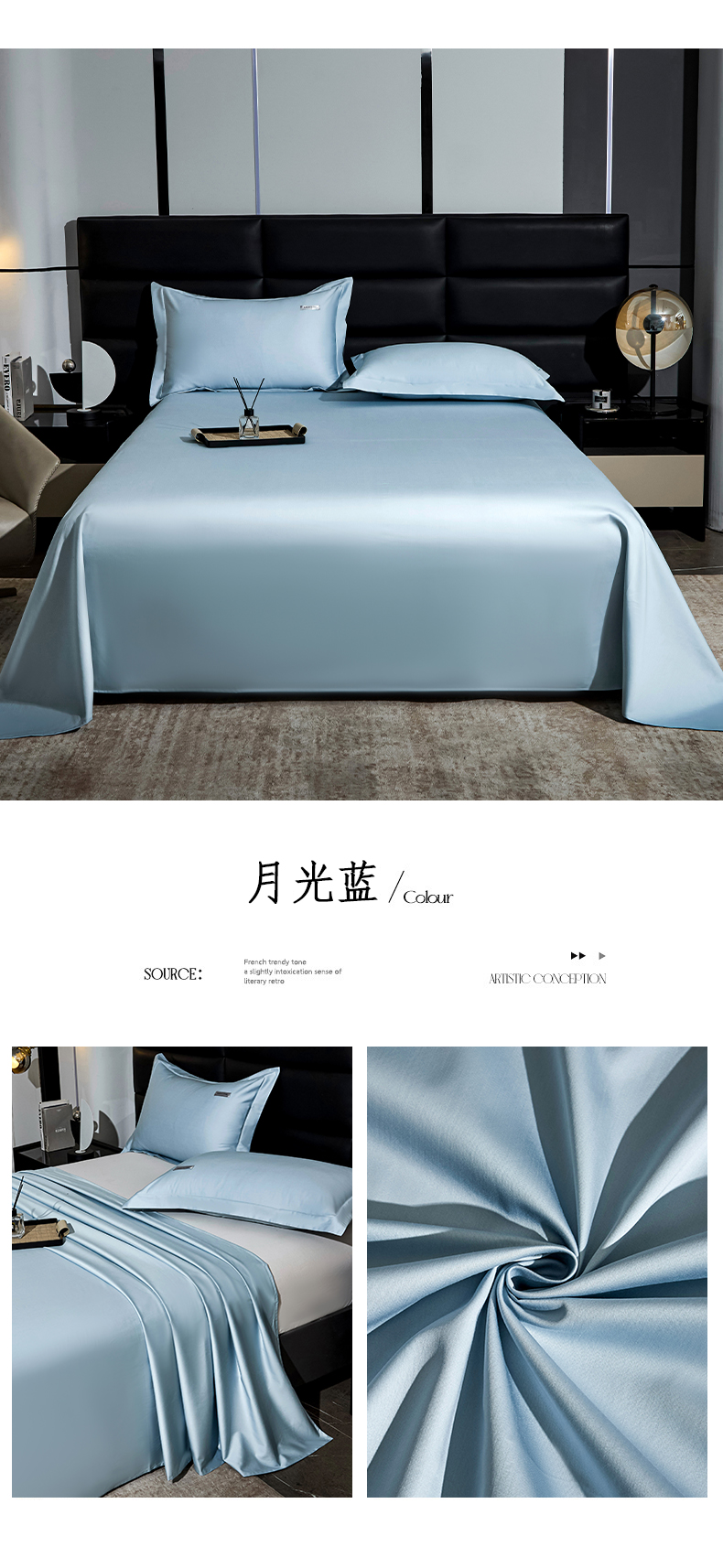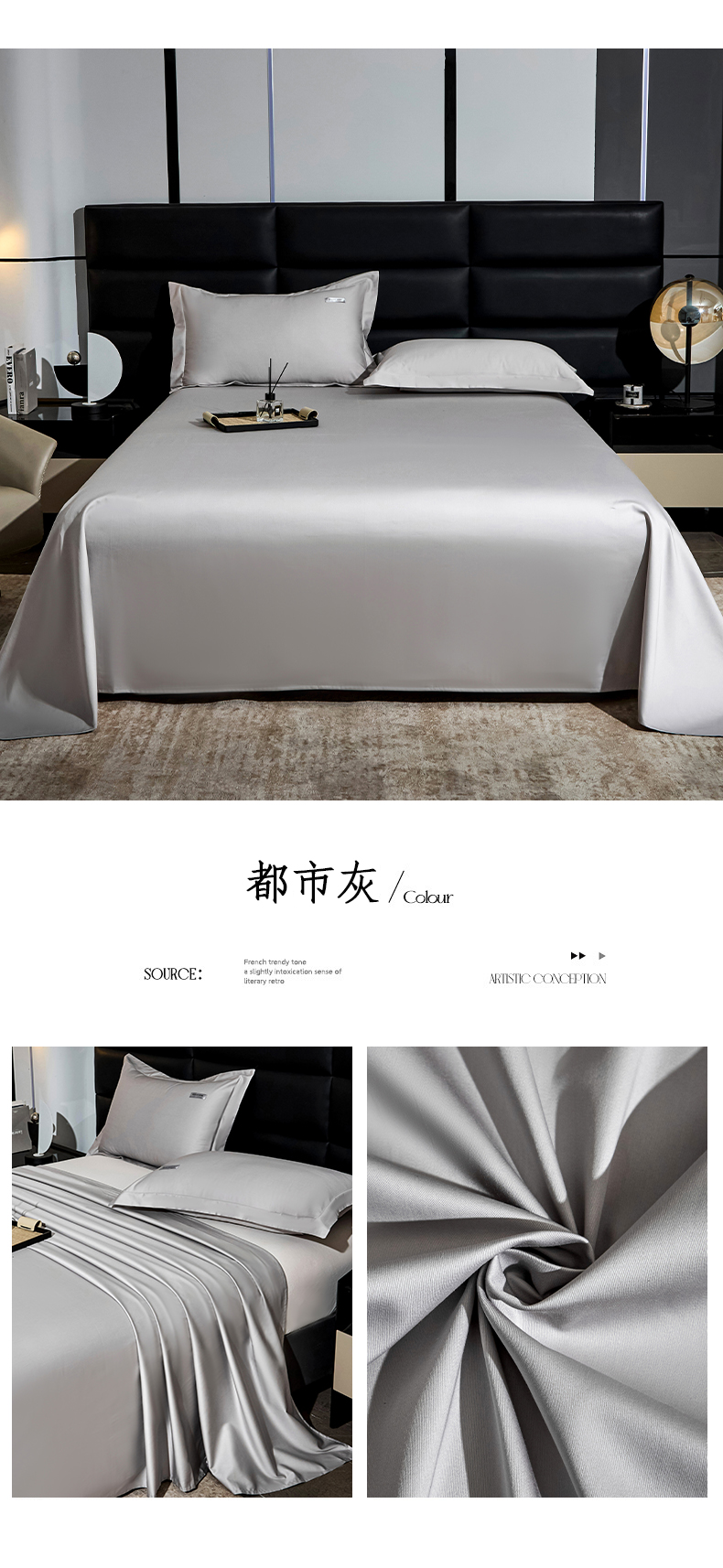 • 91家纺网 家纺一手货源 找家纺 凯森家纺 高端新疆100支长绒棉床单单件纯棉全棉单双人贡缎加厚被单三件套简约纯色床单床笠 床笠-都市灰