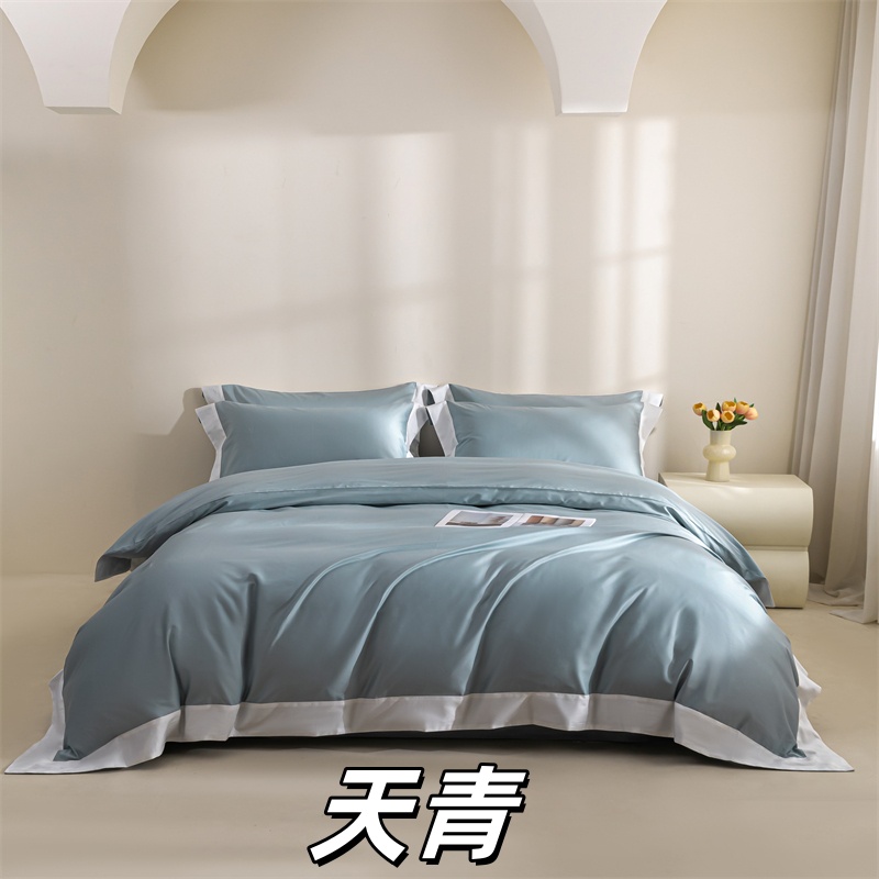 商品名称:贝兰仙奴2025新款50双股长绒棉拼边四件套 天青