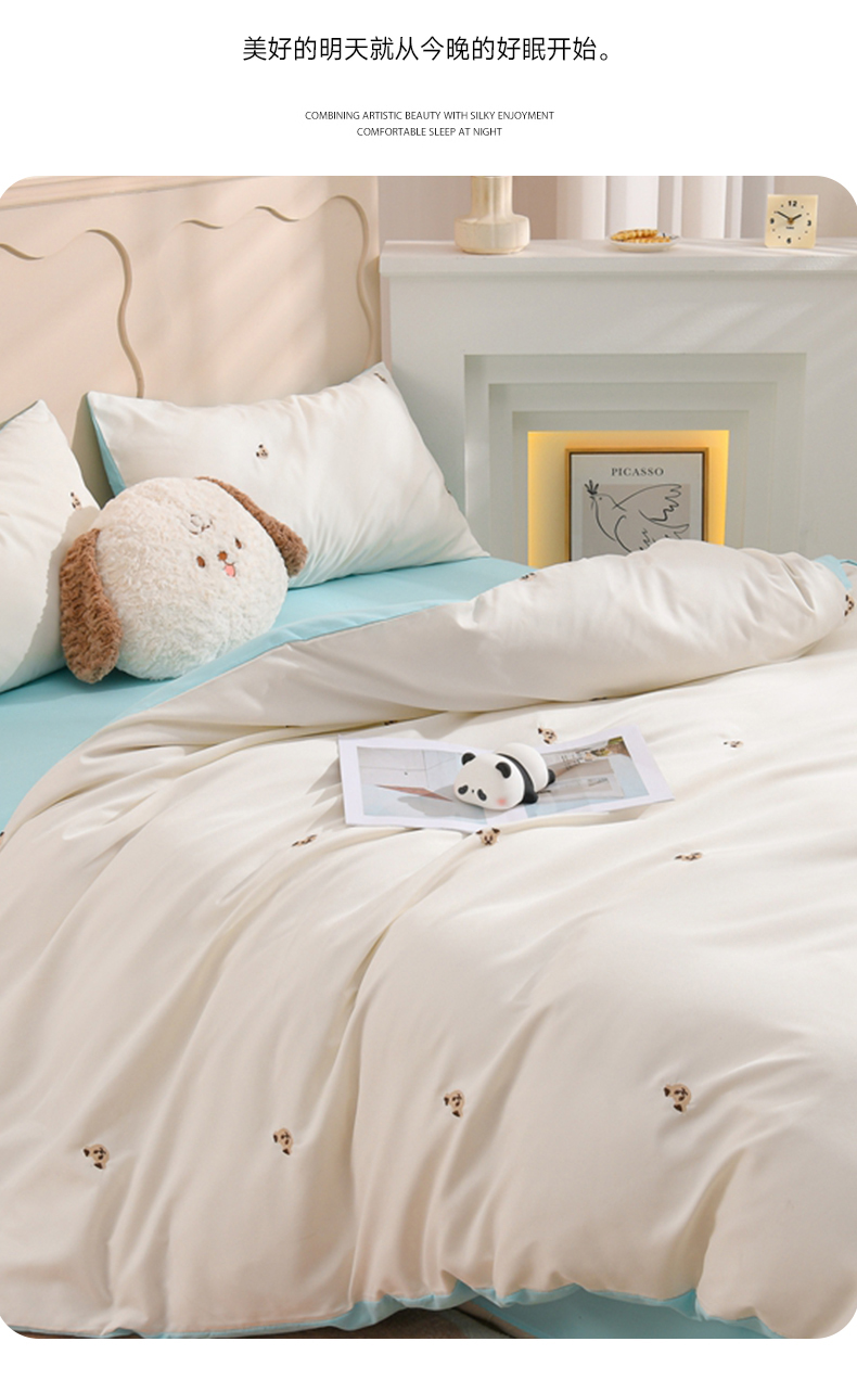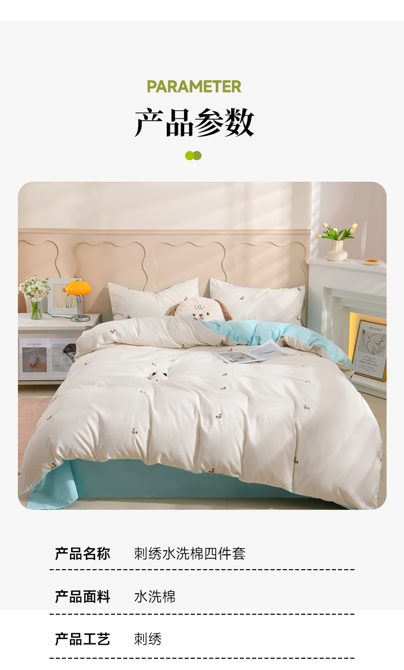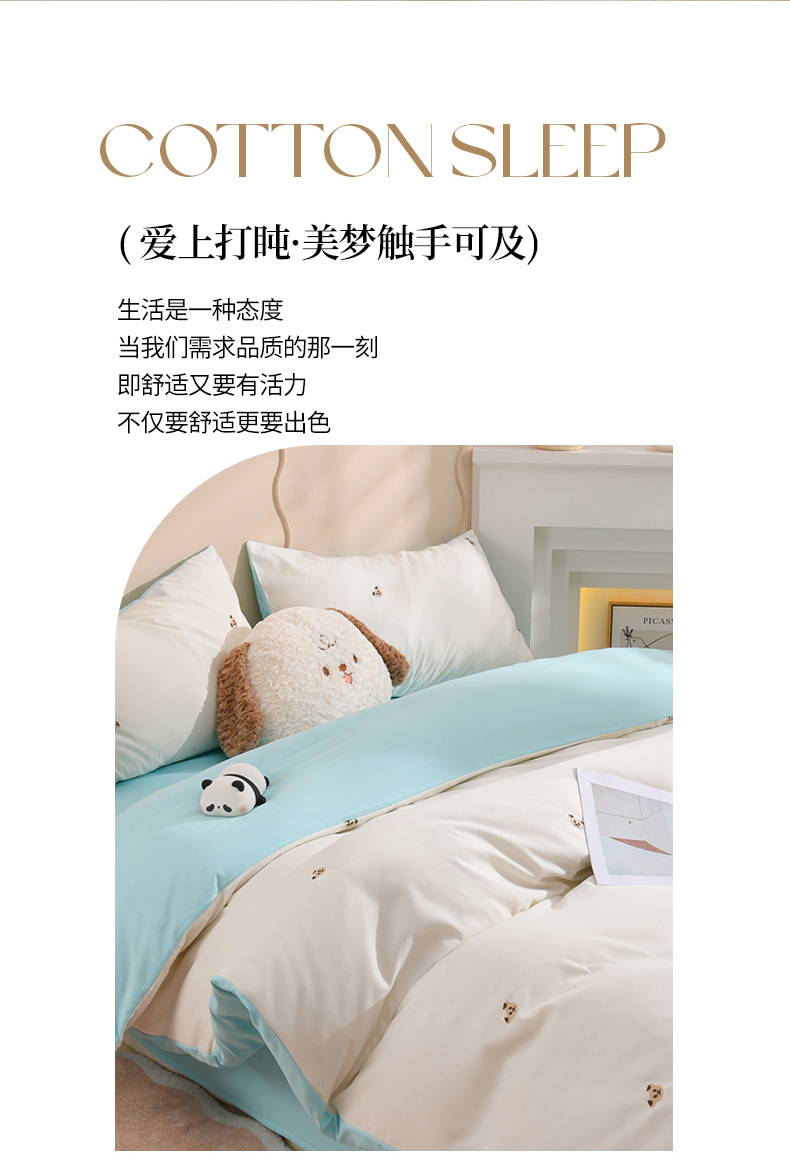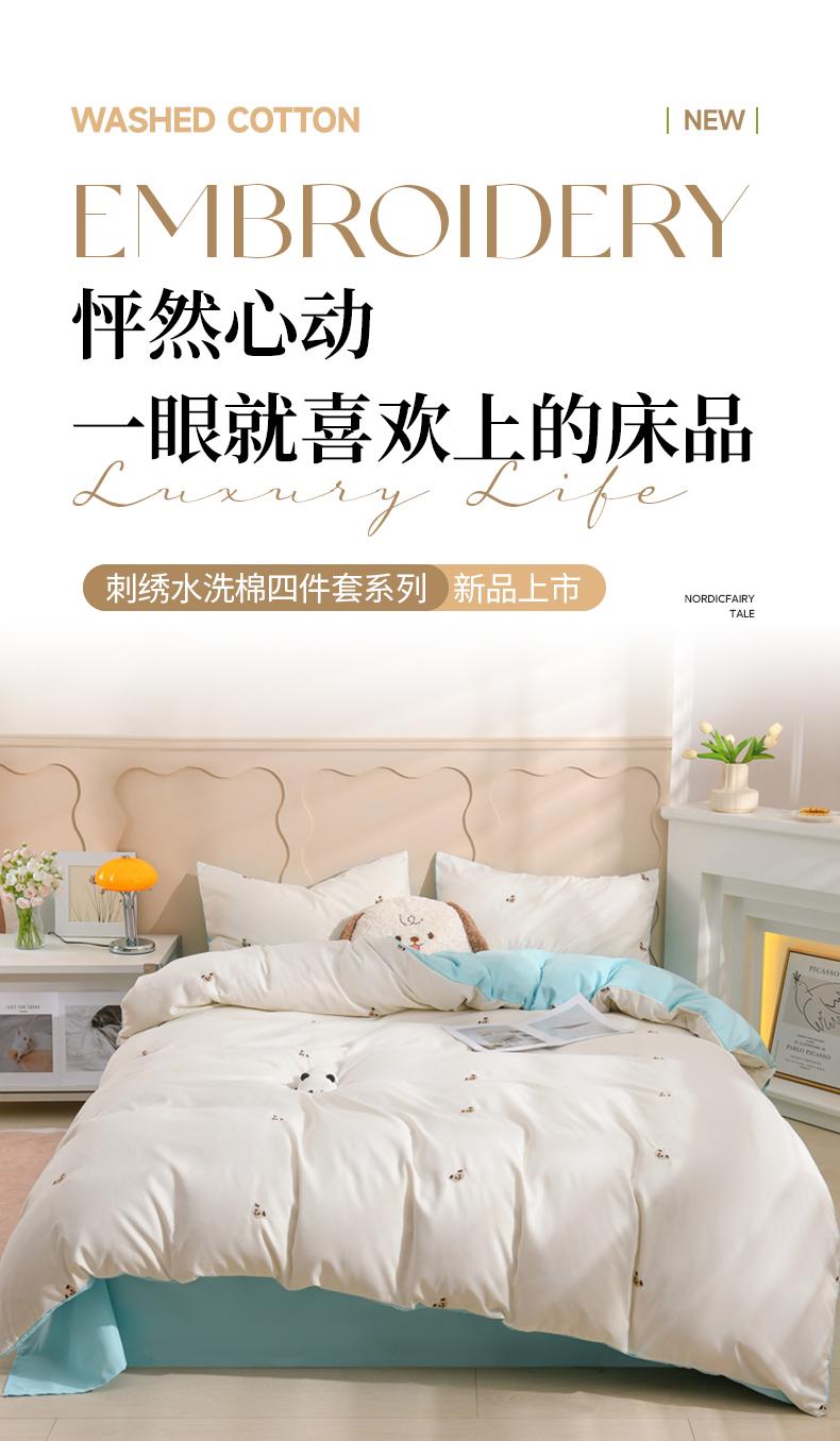 当前位置: 91家纺网 > 商品网购 > 床品套件 > 四件套 > 水洗棉四件套 > 推推家纺 2025新款刺绣水洗棉小清新四件套 熊头-米白+浅蓝