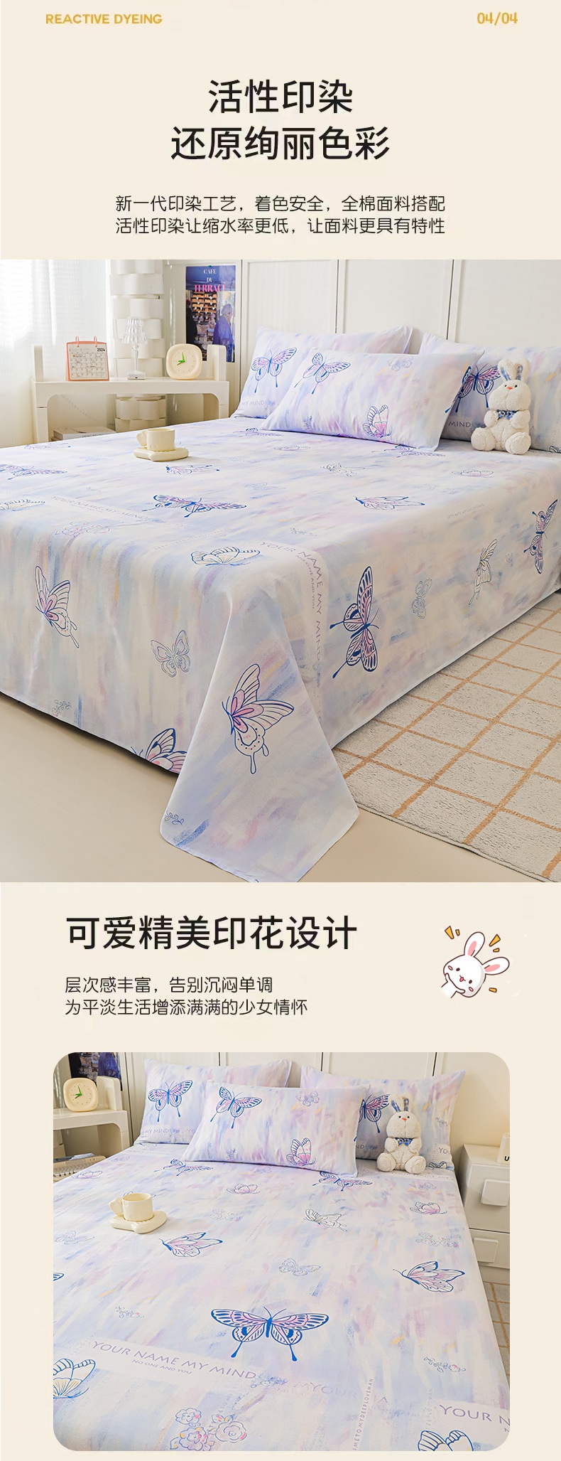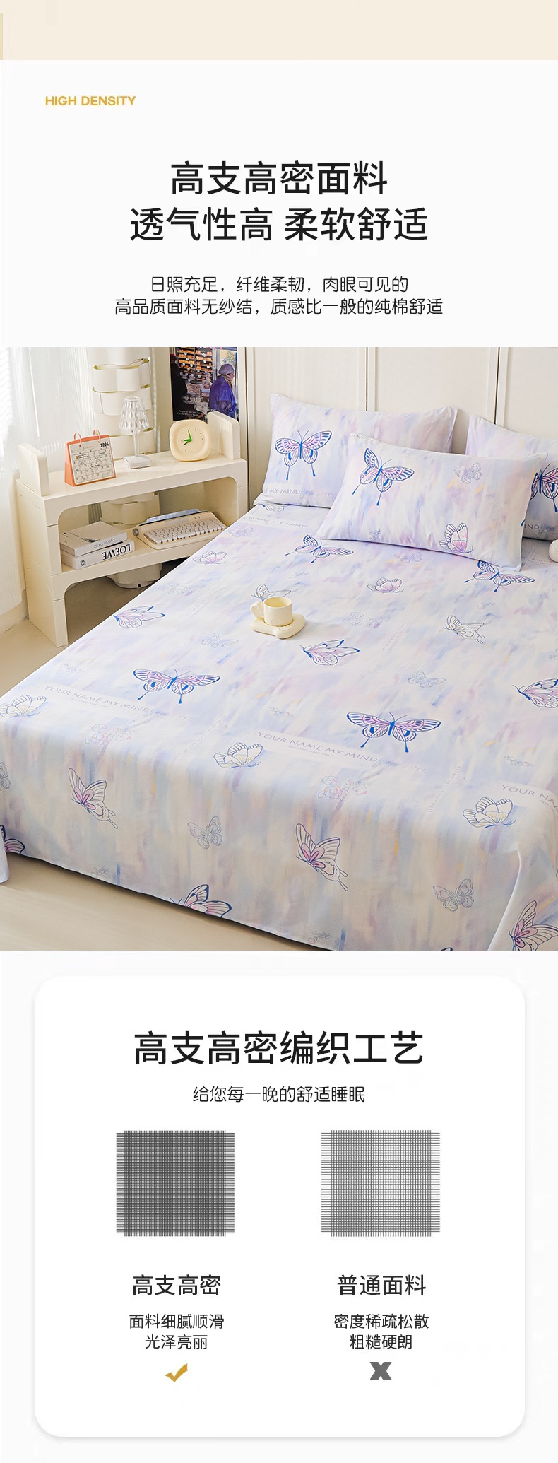 金鑫汇家纺 2025新款13070全棉好卖花型套件系列-单床单(花型更好卖,面料更厚实,退货率低) 梦蝶