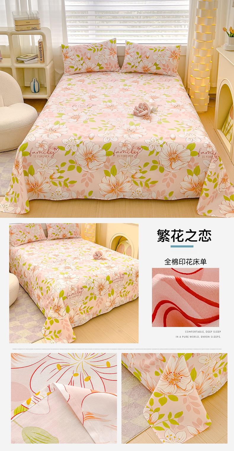 (总)金鑫汇家纺 2026新款全棉印花小清新单品床单系列-可露丽,海盐可露丽,浅咖可露丽,浅绿可露丽,月下花影-桔,月下花影-蓝,月下花影-绿