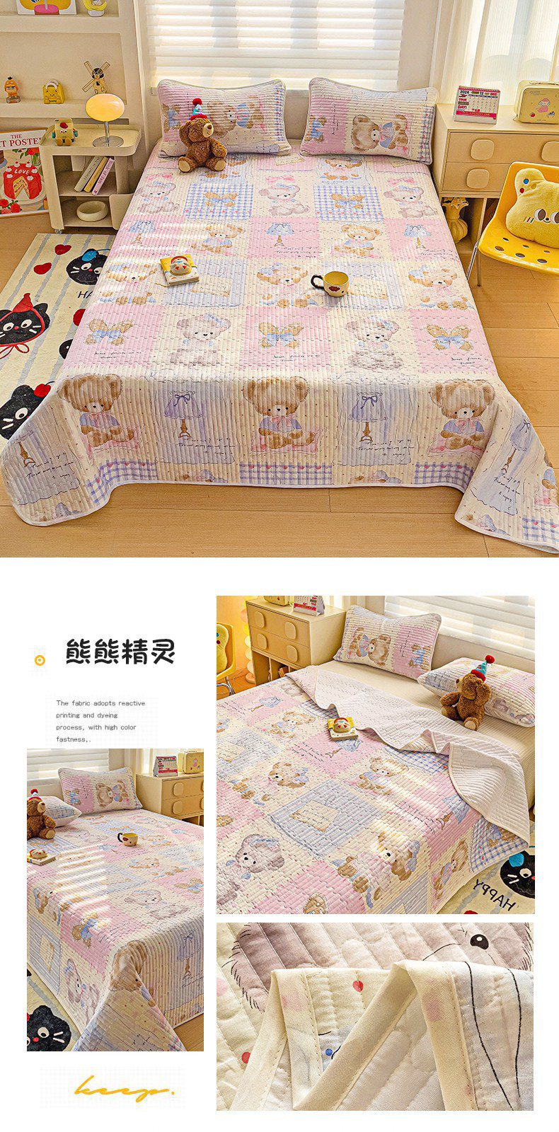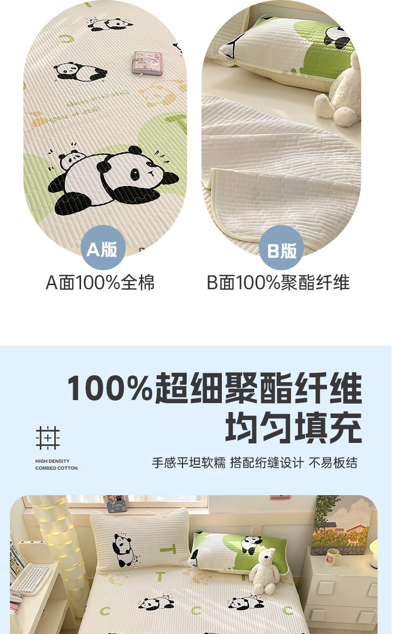 • 91家纺网 家纺一手货源 找家纺 金鑫汇家纺 2025新款全棉绗缝夹棉印花床盖 可爱熊猫 床盖