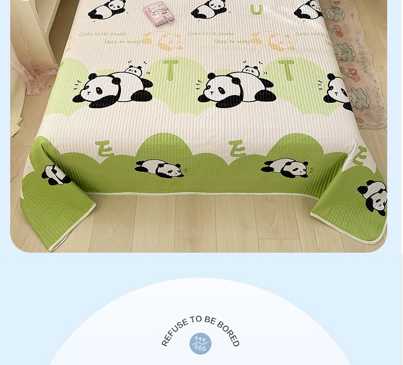 金鑫汇家纺 2025新款全棉绗缝夹棉印花床盖 可爱熊猫 床盖