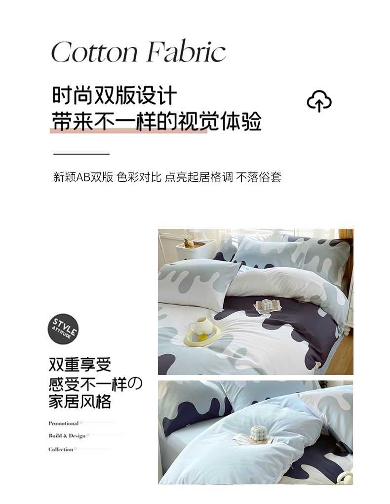(总)金鑫汇家纺 2026新款全棉印花小清新四件套系列-可露丽,海盐可露丽,浅咖可露丽,浅绿可露丽,月下花影-桔,月下花影-蓝,月下花影-绿