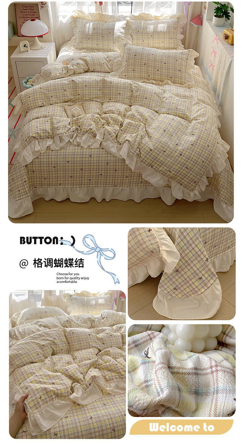 商品名称:美梦家纺2025新款皱皱纱花边被套床盖四件套 格调蝴蝶结