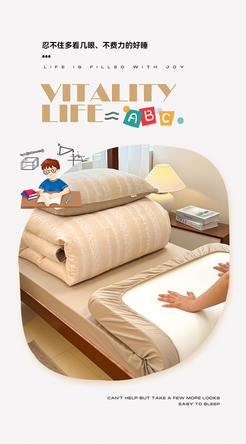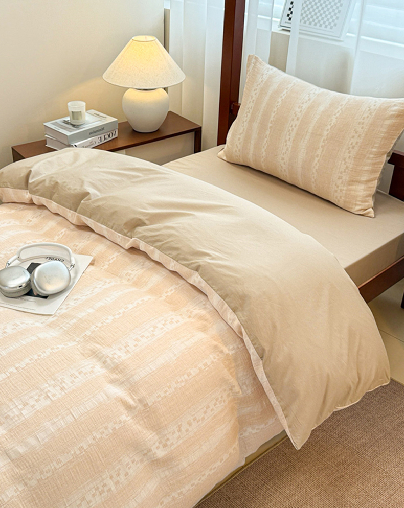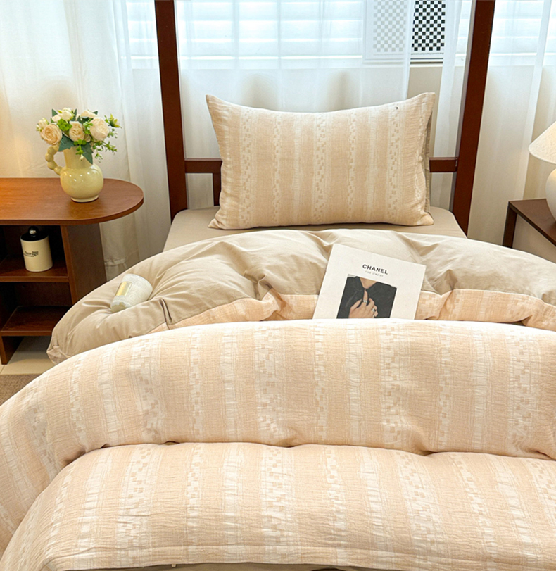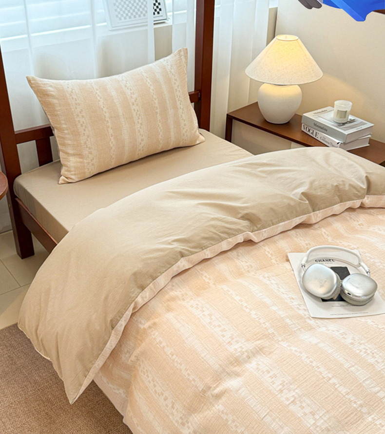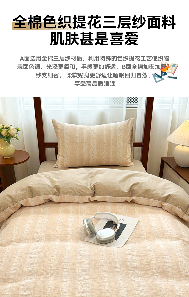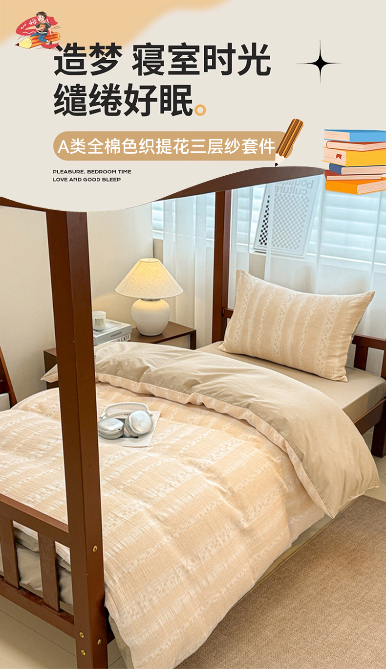 当前位置: 91家纺网 > 商品网购 > 床品套件 > 三件套 > 眠博士 2025新款A类全棉纯棉色织提花三层纱三四件套学生三件套宿舍上下铺 三层纱套件-时光-杏