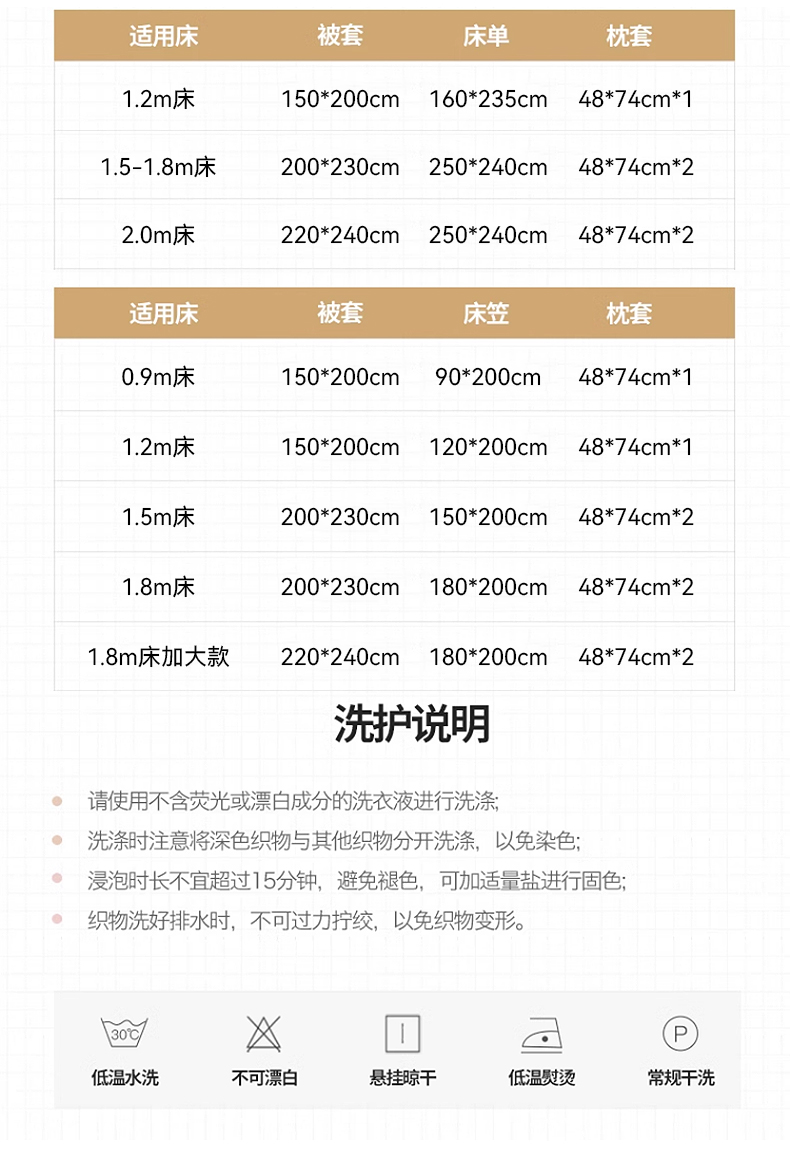 150x200cm被套+枕套一对 | ¥90.00 |