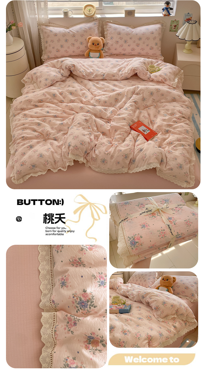 (总)玉海棠家纺 2025新款云感双层纱花边四件套,花边-布丁狗,花边-初恋,花边-米奇,花边-茉片,花边-莫奈,花边-诺言兔兔,花边-晴天,花边-桃桃女孩,花边-桃夭,花边-甜梦,花边-晚香玉,花边-雾漫春日,花边-鲜花小兔,花边-小熊蛋糕,花边-芝士奶酪,花边格格西高地
