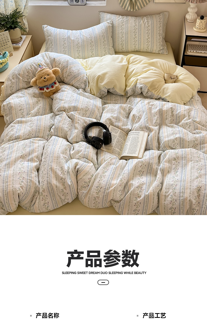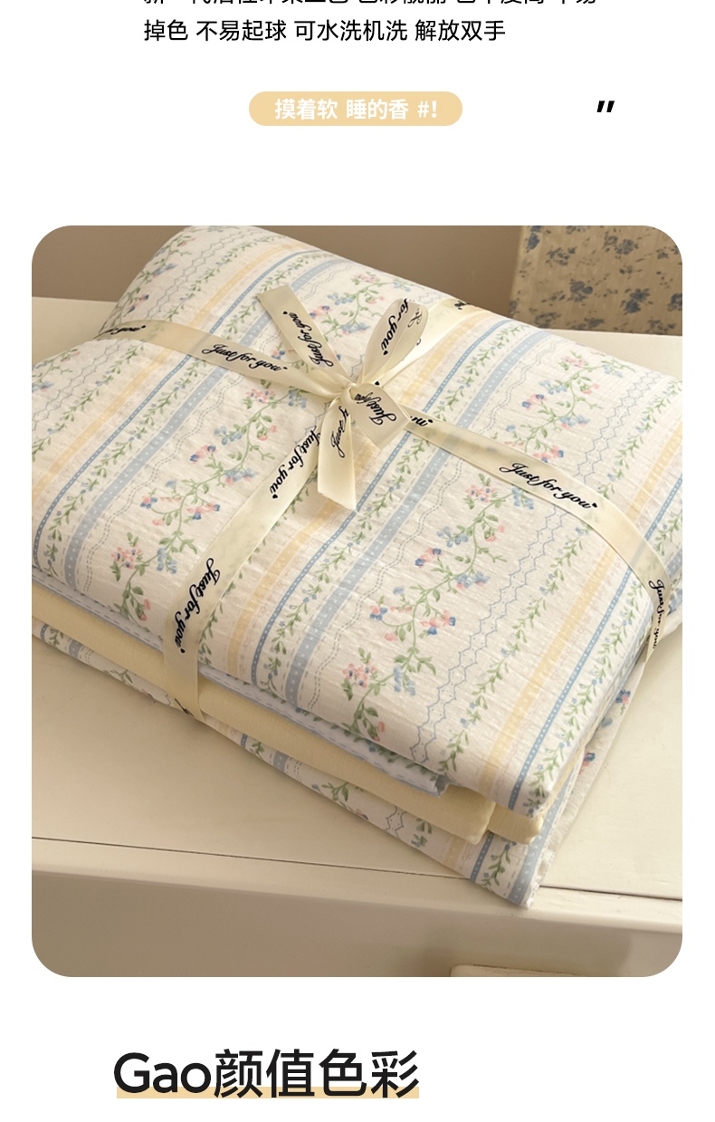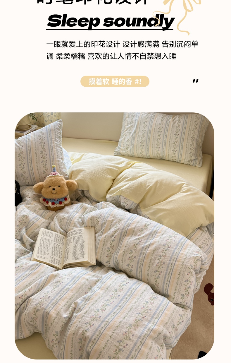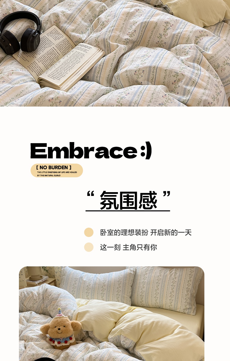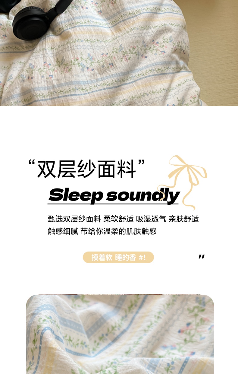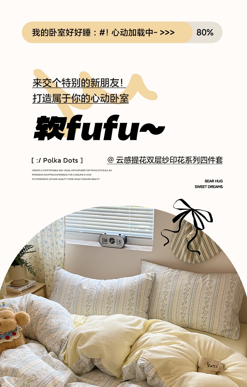 当前位置: 91家纺网 > 商品网购 > 床品套件 > 四件套 > 双层纱四件套 > 玉海棠家纺 2025新款云感提花双层纱印花系列四件套-场景一 晴天