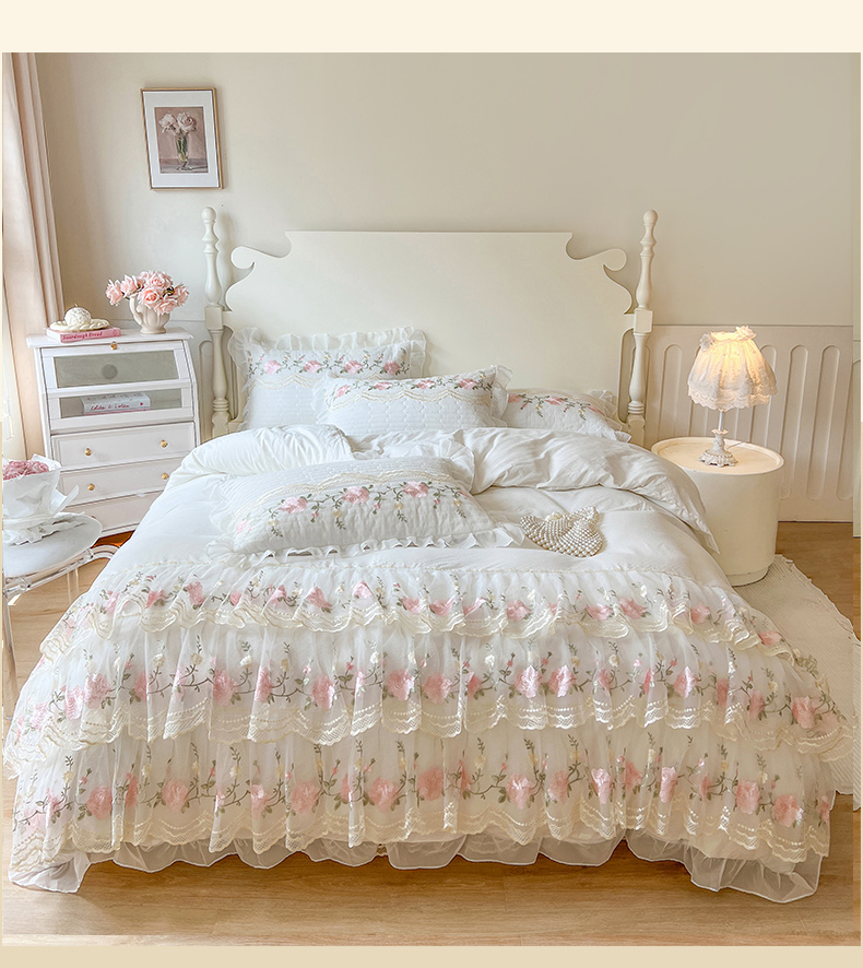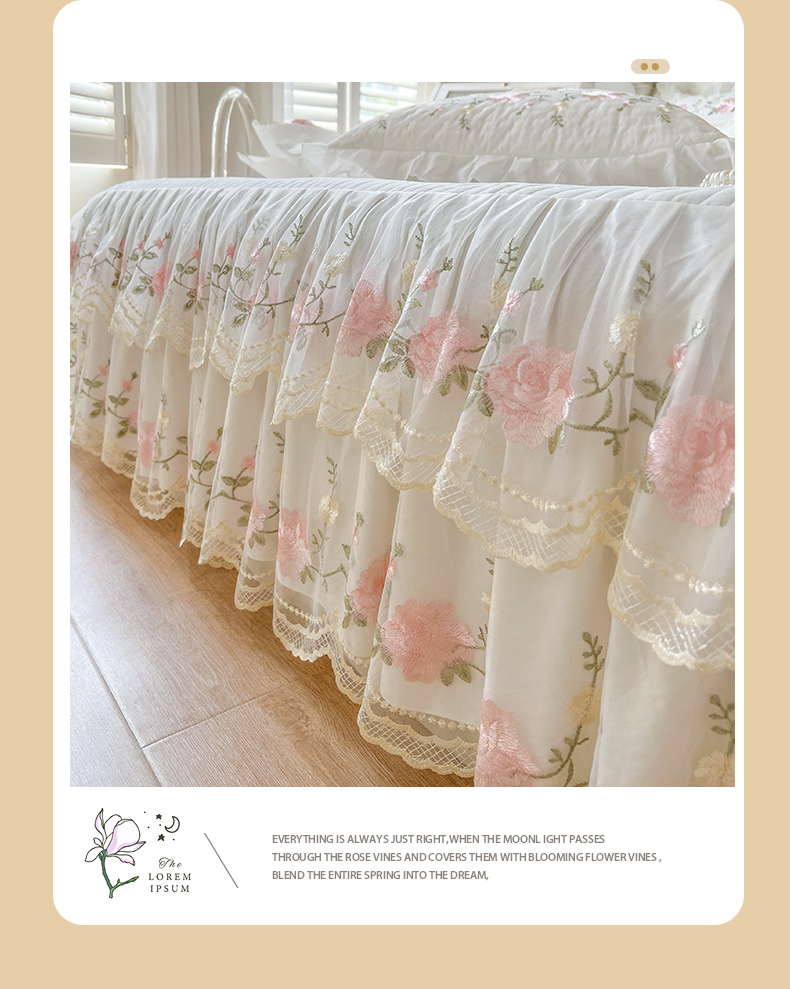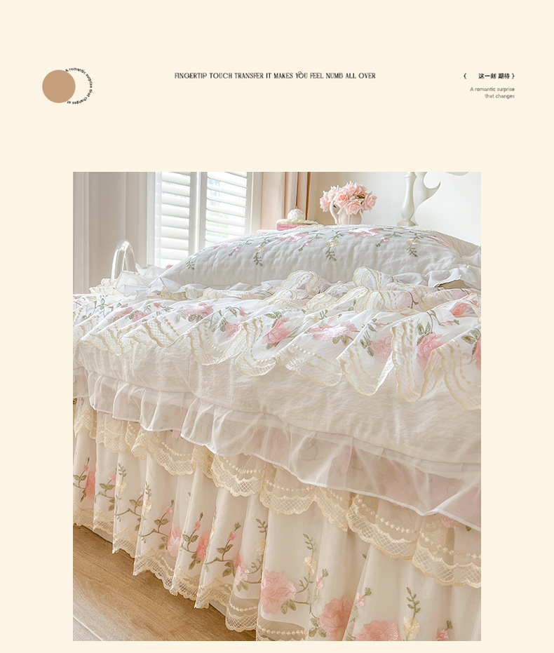 当前位置: 91家纺网 > 商品网购 > 床品套件 > 四件套 > 其它四件套 > 恋尚 2025新款木棉蕾丝床裙四件套-泡芙 泡芙-奶白