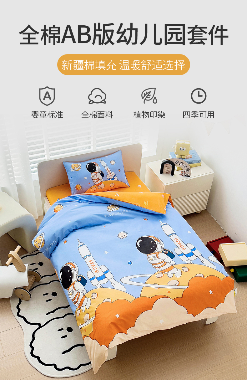 当前位置: 91家纺网 > 商品网购 > 床品套件 > 多件套 > 多件套 > 2025年新款幼儿园全棉被子三件套宝宝入园纯棉六件套被褥午睡被套领航员