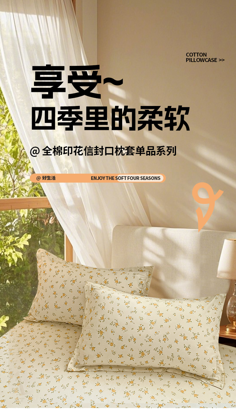 (总)菲梵家纺 2025新款亲肤舒适全棉纯棉活性印染单品系列单枕套单品枕套枕套单件-第二批