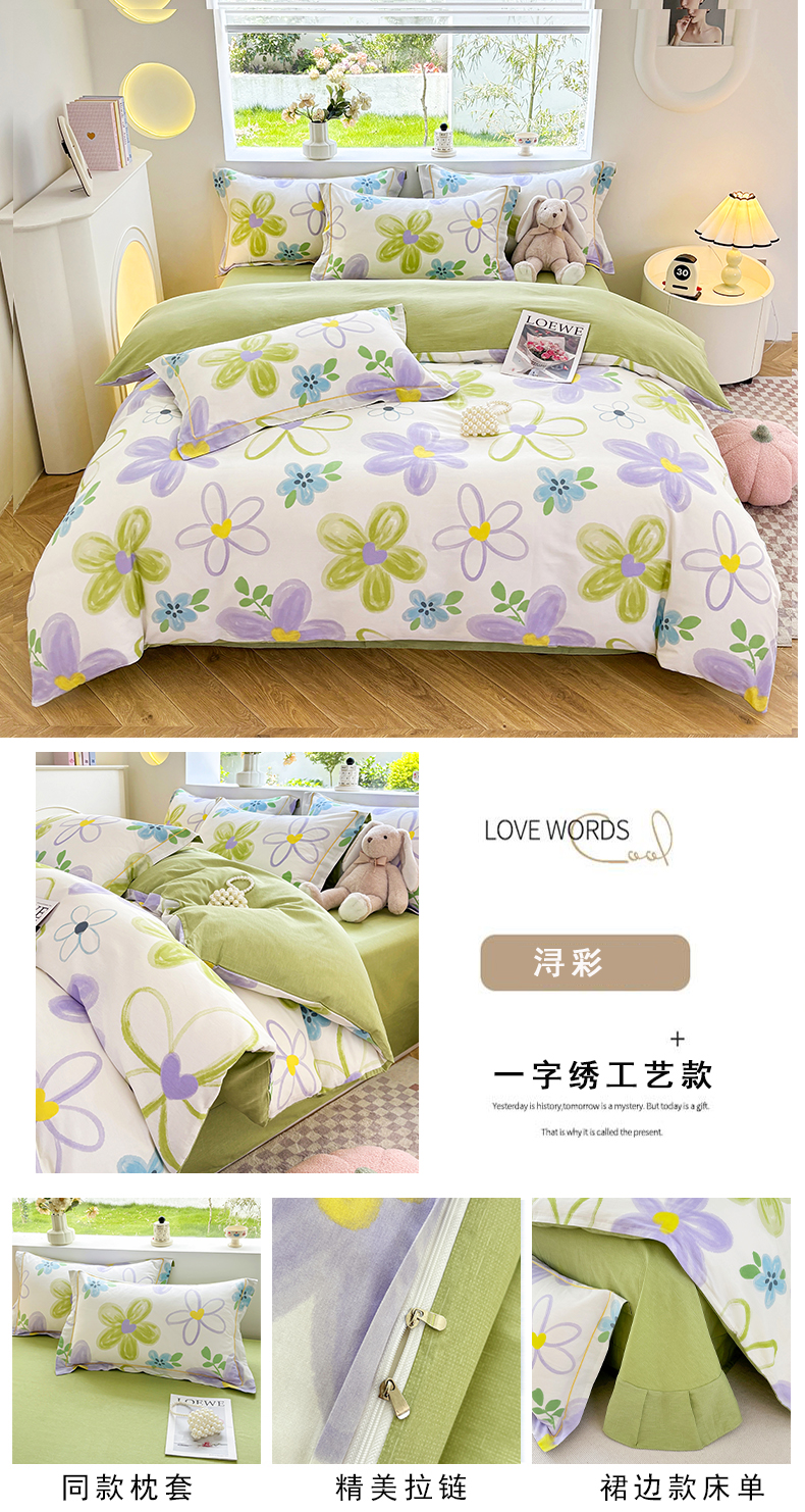 当前位置: 91家纺网 > 商品网购 > 床品套件 > 四件套 > 全棉普通四件套 > 宇彬家纺 2025直播新款13070全棉纯棉印花床单床笠款四件套和单被套一字绣工艺款 一字绣 花屿芷