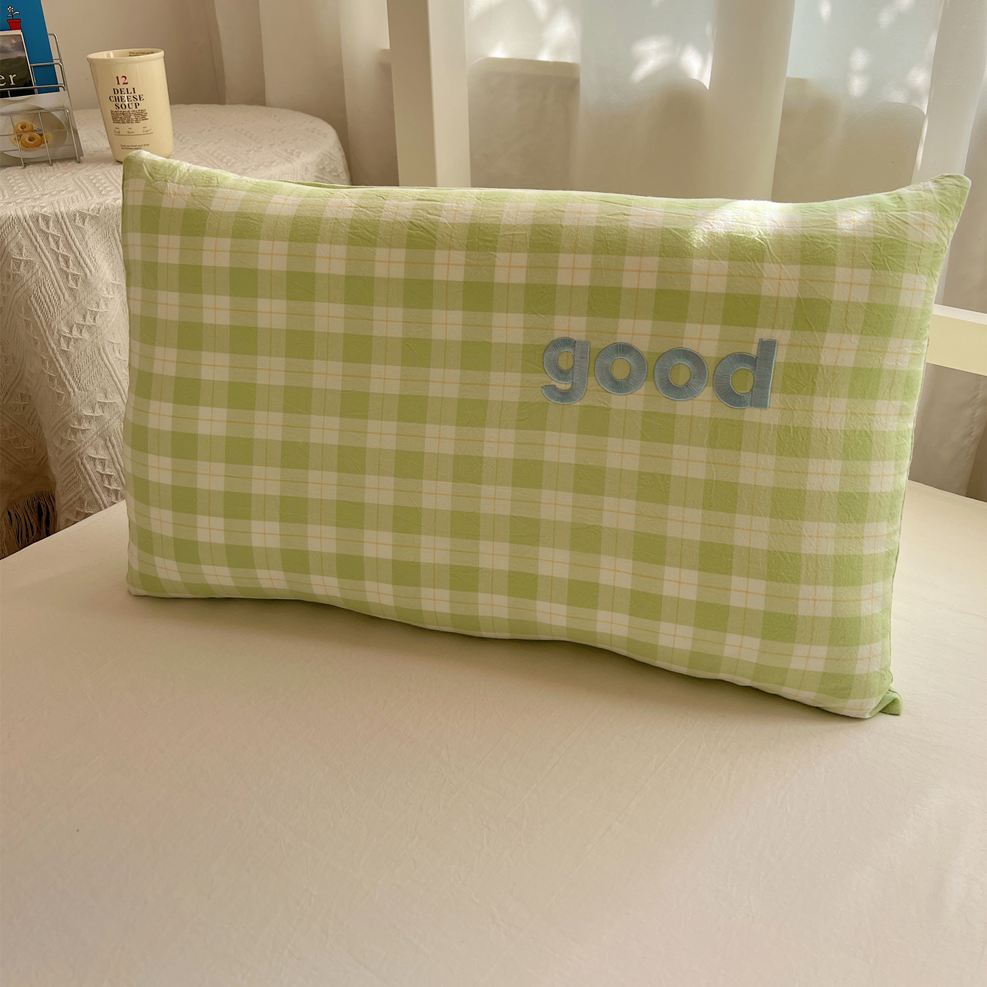 商品名称:丽涵家纺 2025新款全棉纯棉色织水洗棉刺绣婴幼儿童枕套枕套单件单枕套-儿童款 韵律-绿