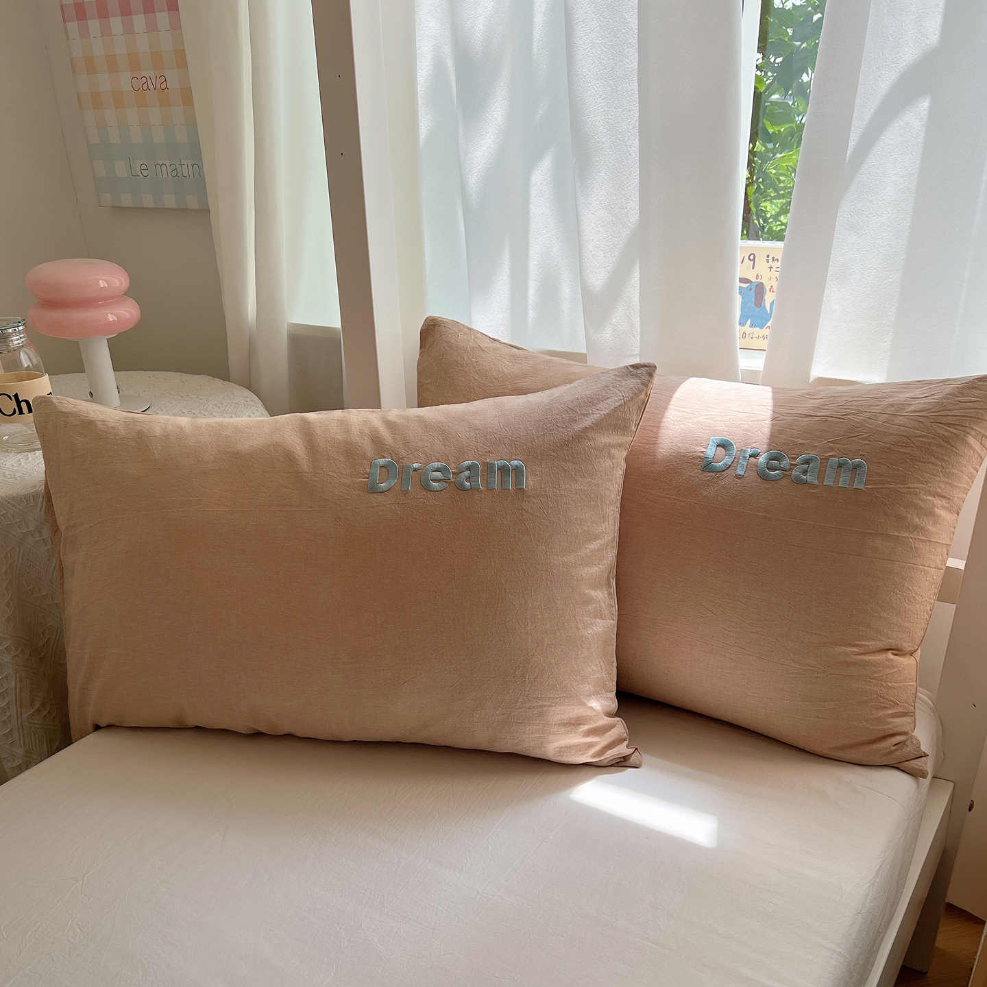 丽涵家纺 2025新款全棉纯棉色织水洗棉刺绣单品枕套枕套单件单枕套-常规单人款 韵律-粉