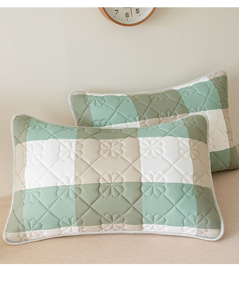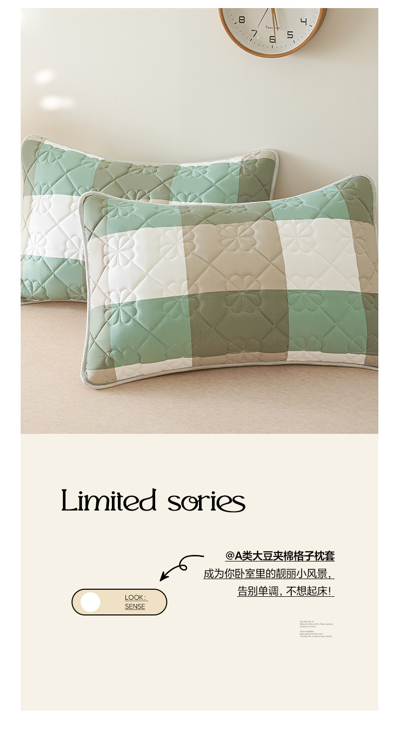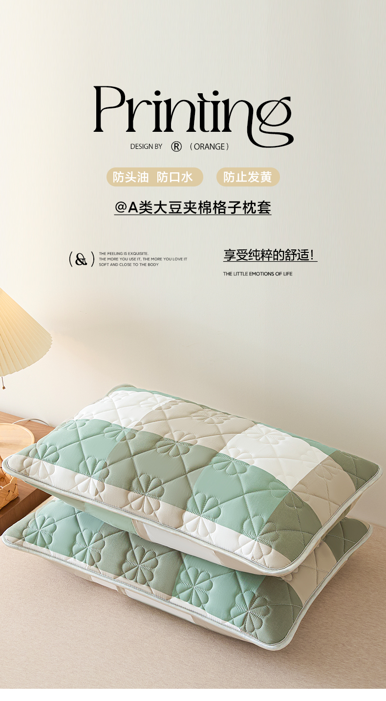 商品名称:芬晴家纺 2025新款A类大豆夹棉格子枕套单件单枕套防口水头油 绿大格